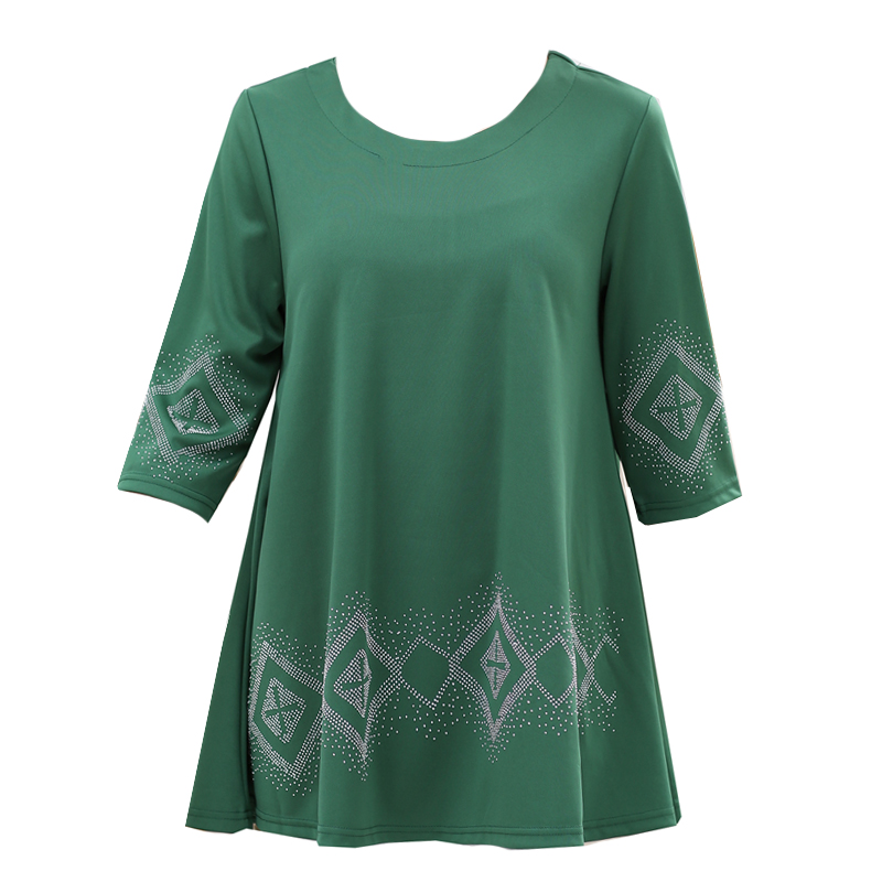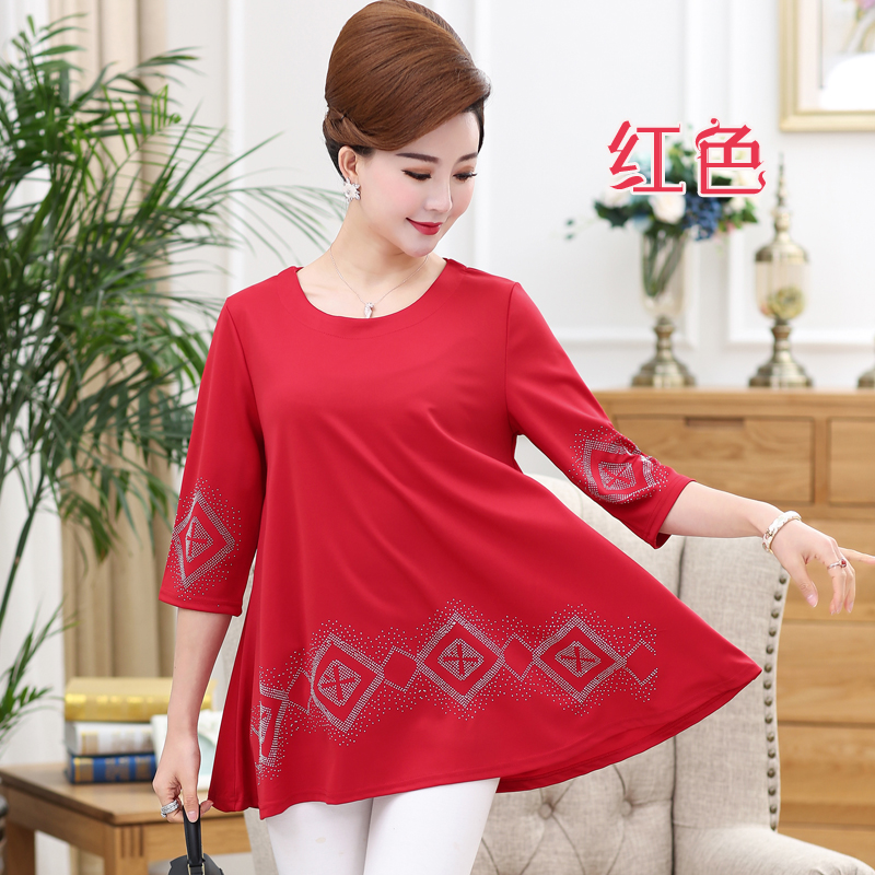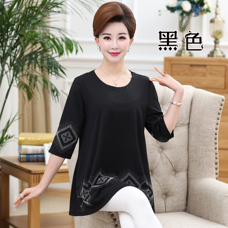 胖MM圆领T恤大码镶钻中袖妈妈装