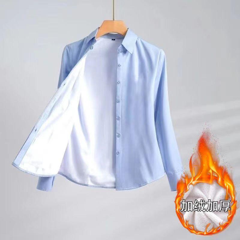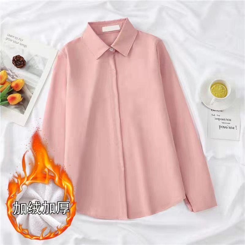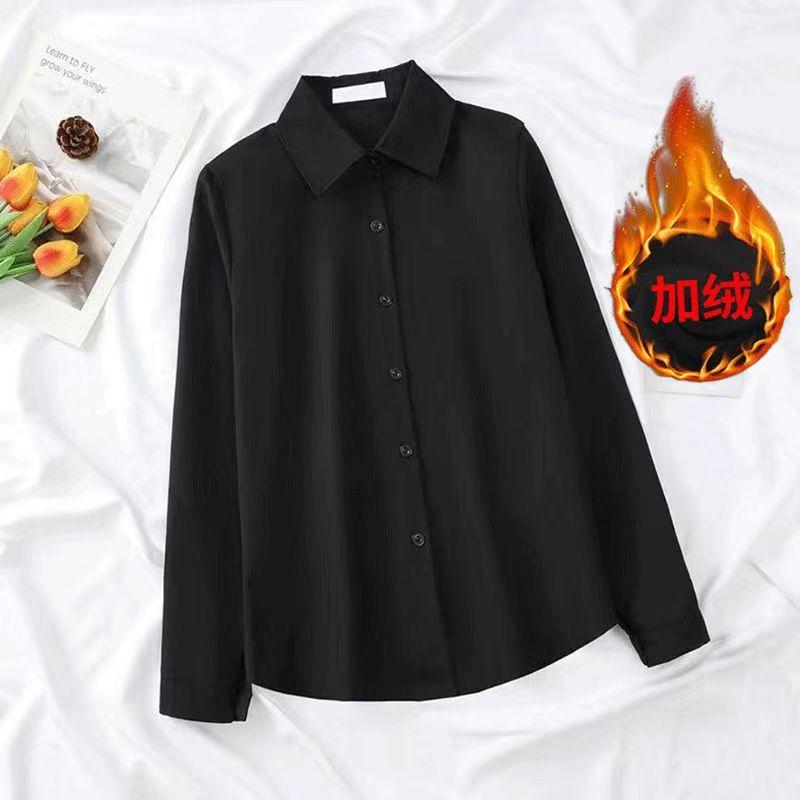 加绒加厚白色衬衫女长袖2024秋冬设计感小众宽松学院风百搭衬衣女