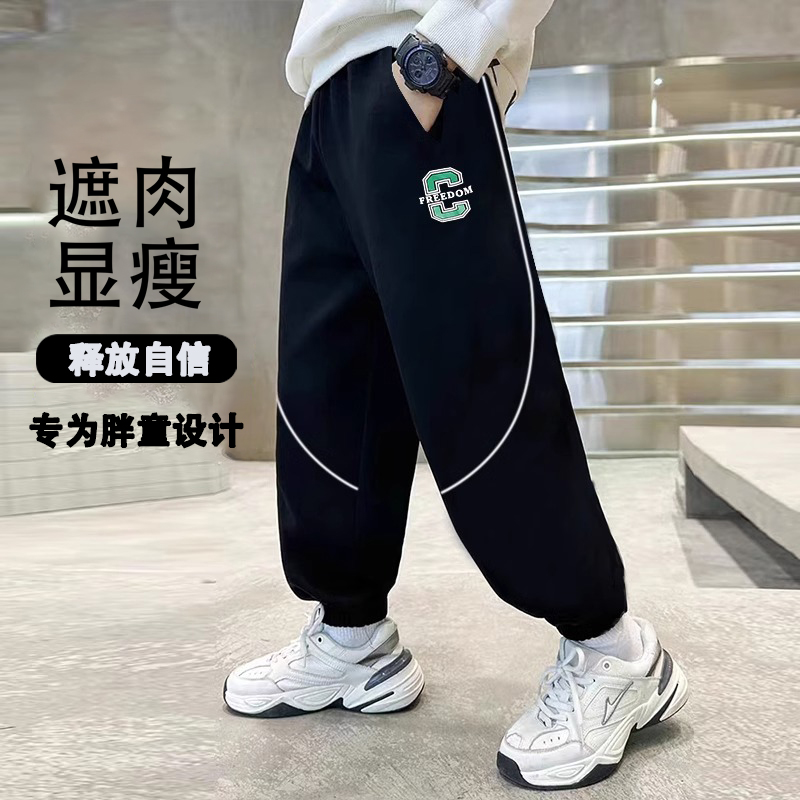 胖童男装加肥加大纯棉加绒款运动裤男童新款束脚中大码春秋装2023
