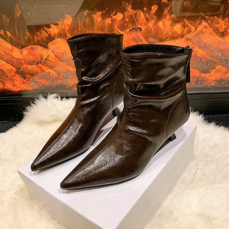 2025秋季新款女鞋短筒布中跟(3-5cm)时装靴后拉链尖头