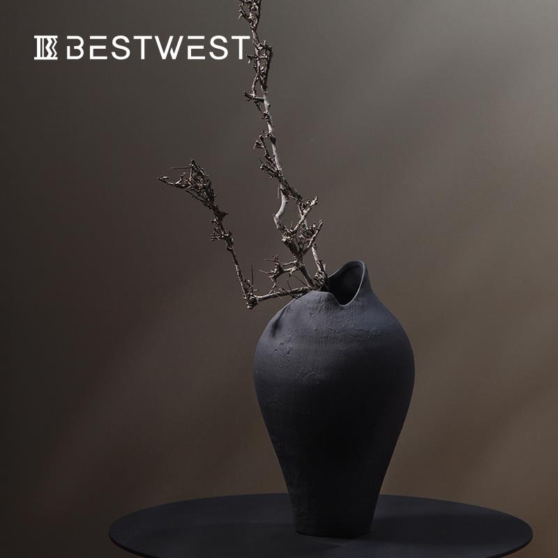 黑色花瓶摆件景德镇陶瓷大陶罐花器复古高级感侘寂风干花装饰客厅
