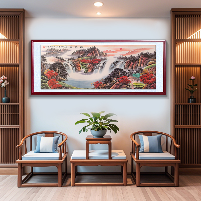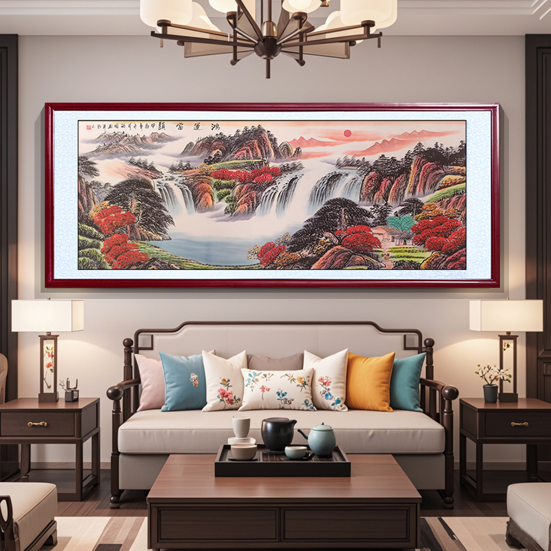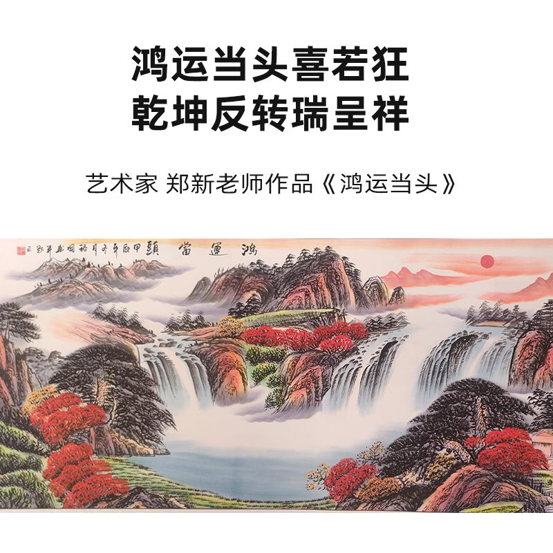鸿运当头国画风水 客厅装饰画办公室字画 纯手绘真迹山水画挂画