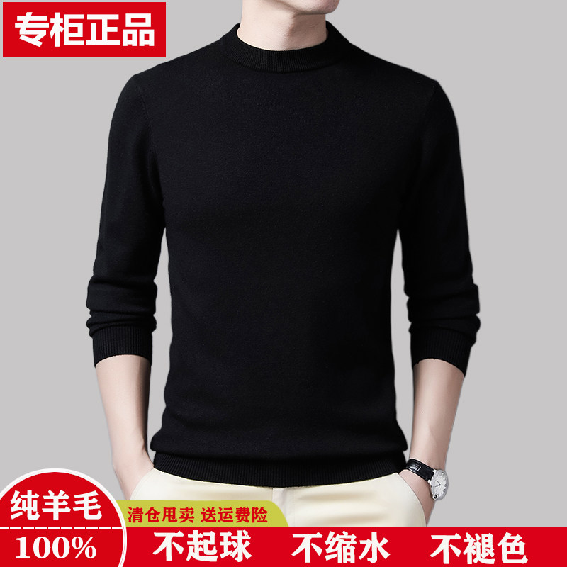 鄂尔多斯市100%纯羊毛男士半高领加厚保暖潮流毛衣针织羊绒打底衫