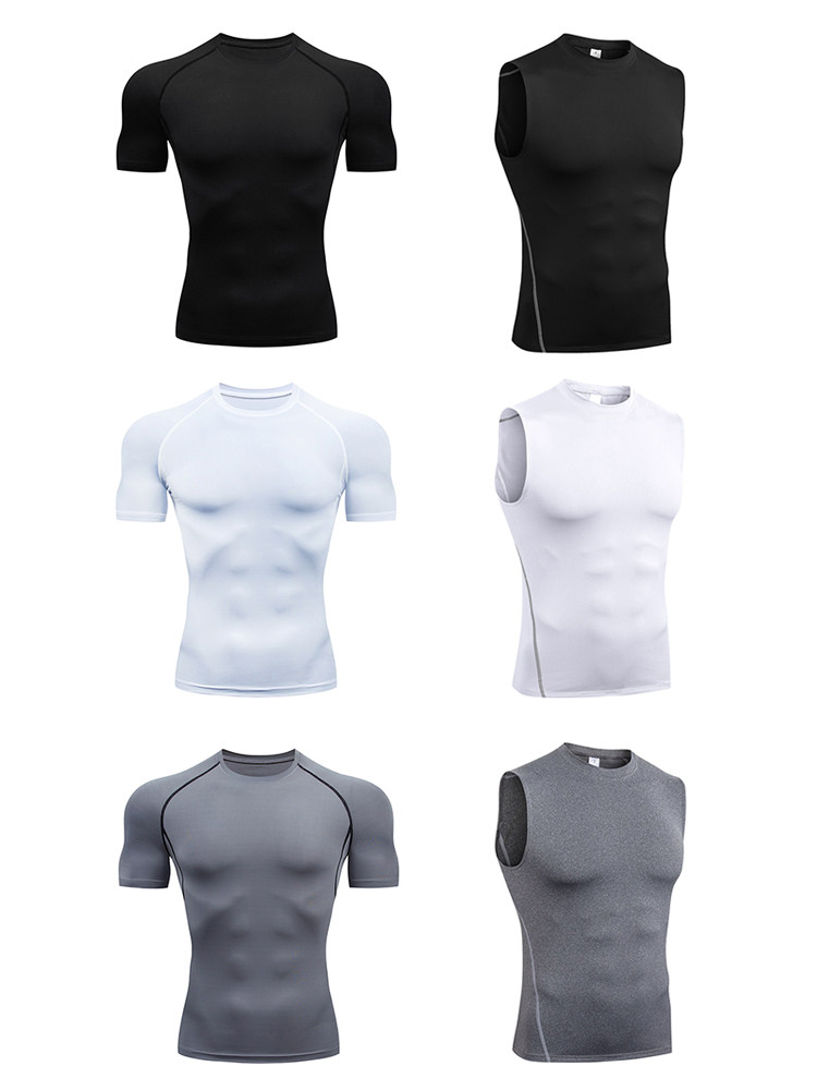 夏季薄款健身衣男速干高弹背心短袖长袖运动跑步半袖透气训练上衣