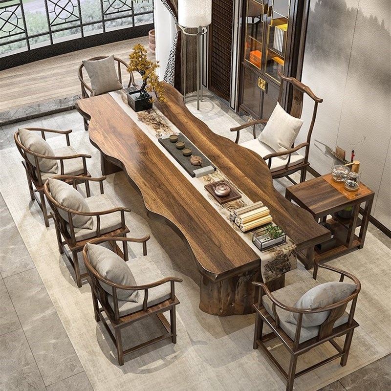 实木大板茶桌椅组合新中式茶台茶几禅意功夫简约现代办公室泡茶桌