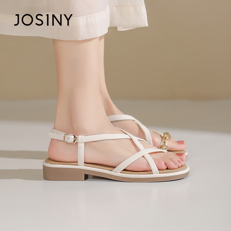 卓诗尼2025年夏季新款女鞋平底罗马夹趾凉鞋交叉配裙子外穿凉鞋