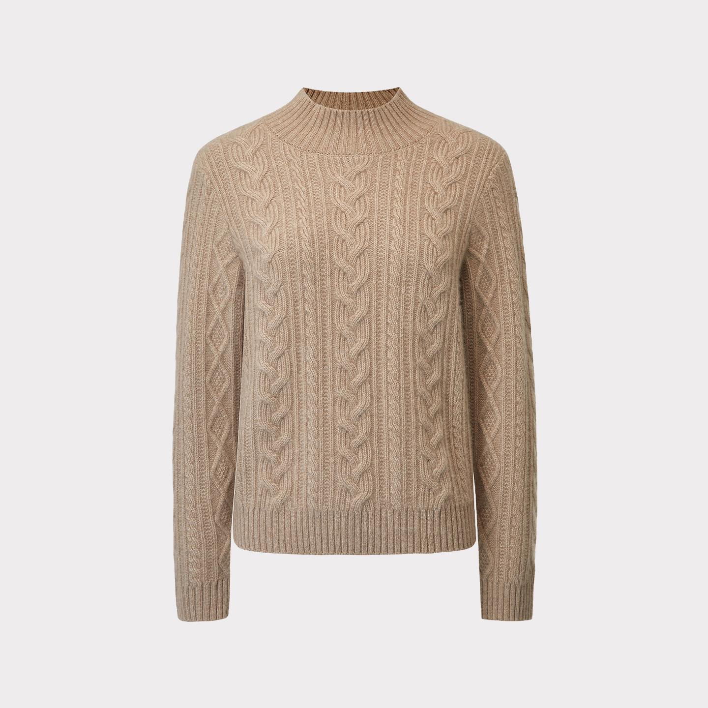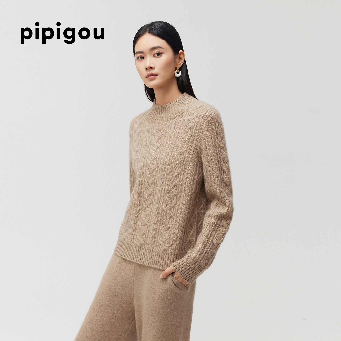 皮皮狗商场同款无染色系列秋冬新款半高领加厚绞花套头针织羊绒衫