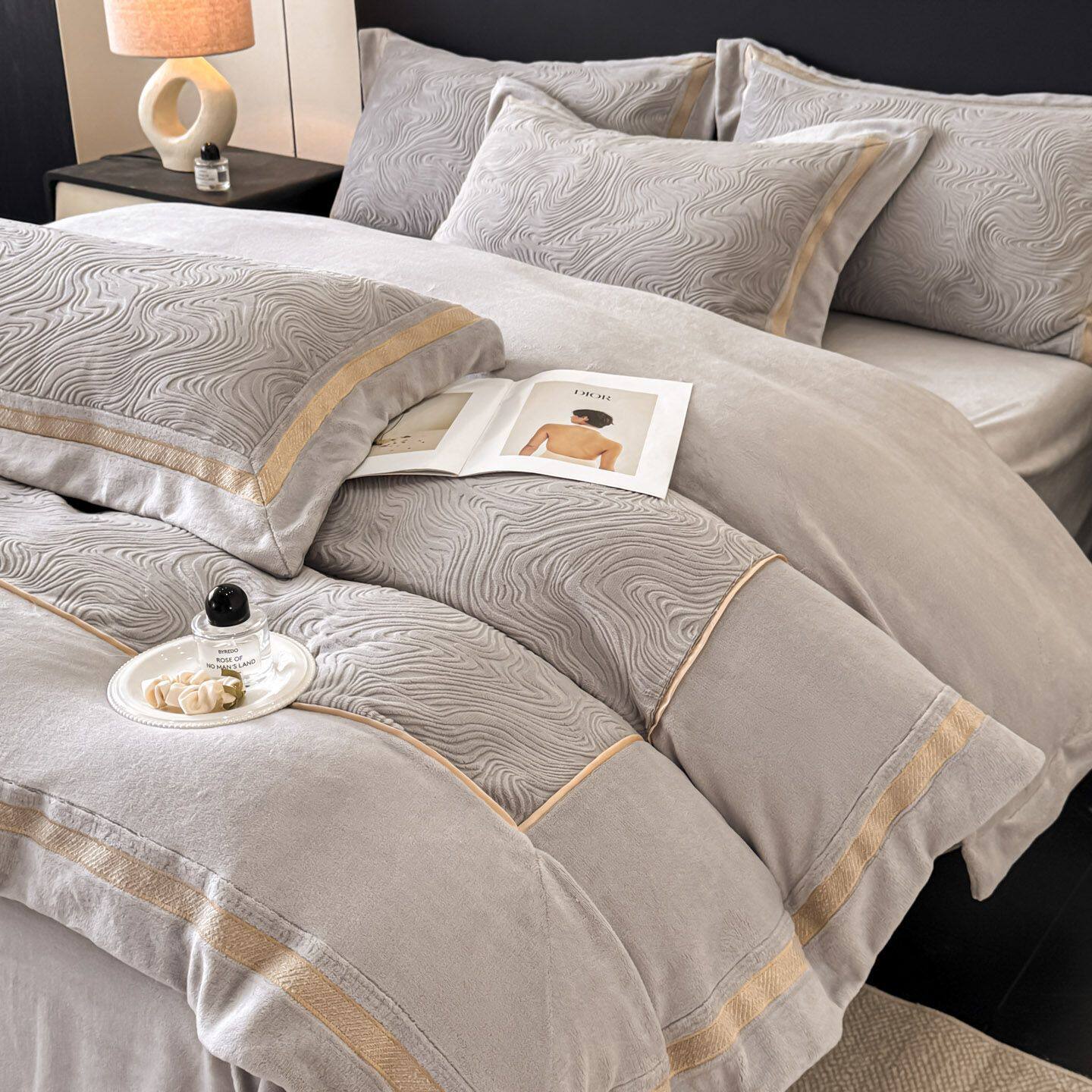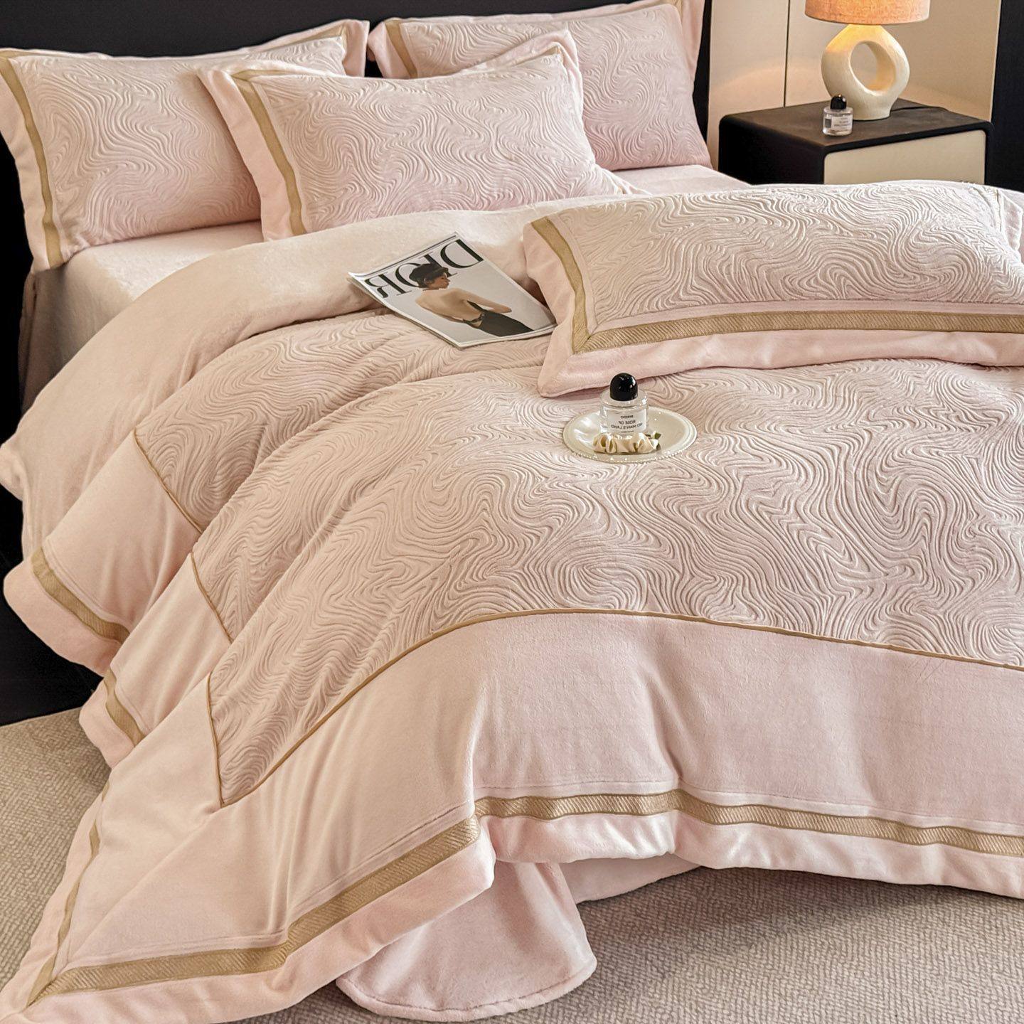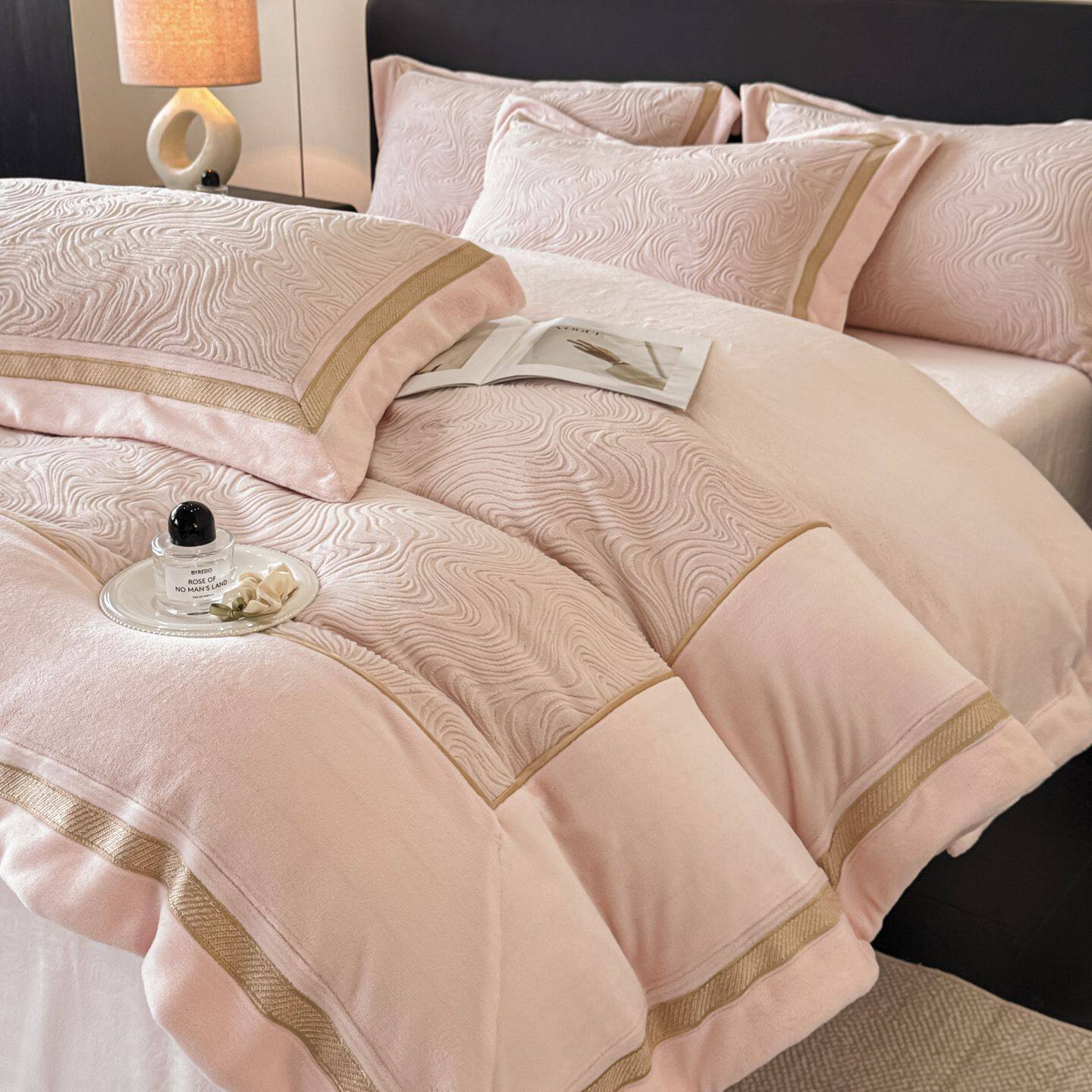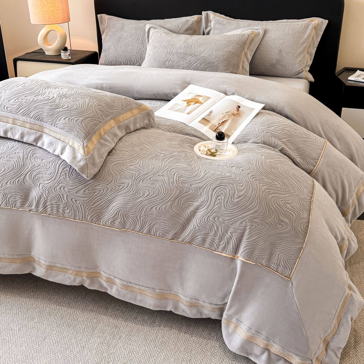 冬季高端加厚雕花牛奶绒刺绣四件套保暖珊瑚绒被套床单床上用品