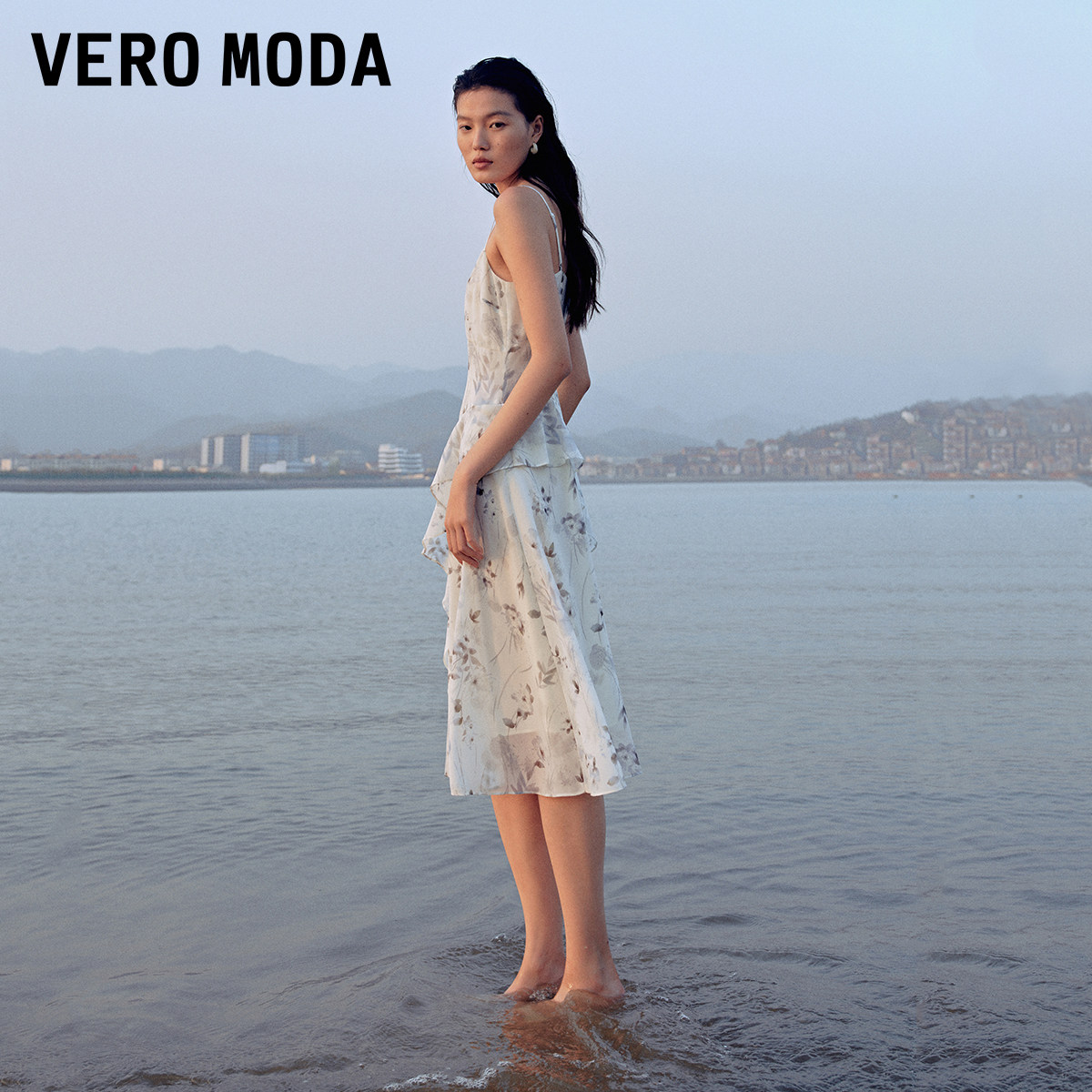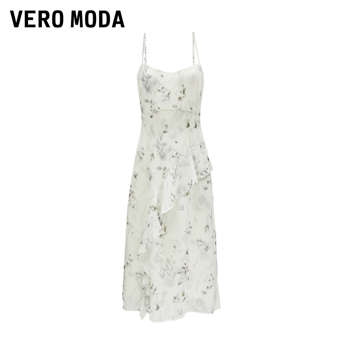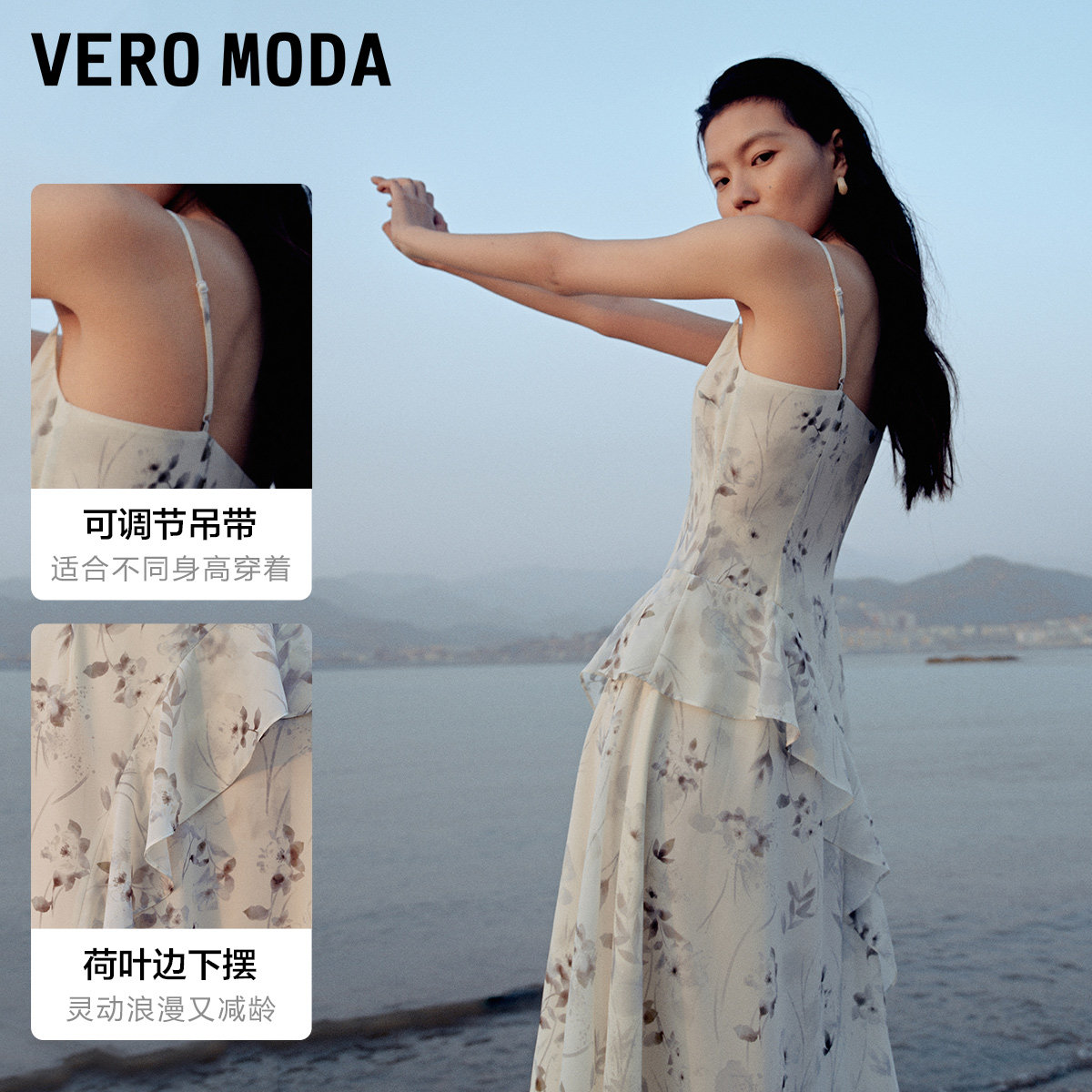 Vero Moda奥莱连衣裙春夏新款印花荷叶边收腰浪漫度假吊带裙子