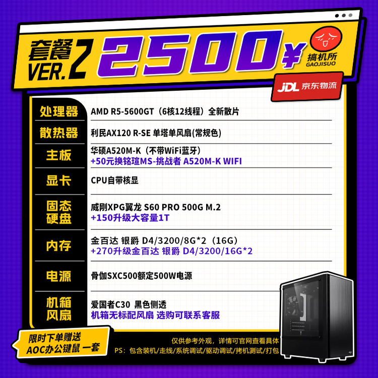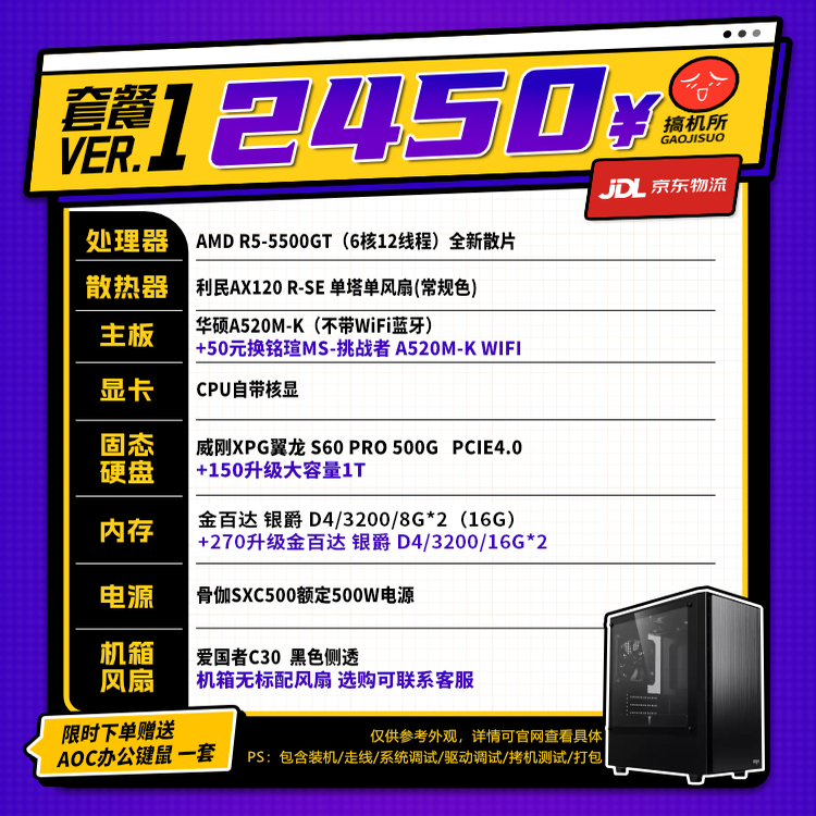 搞机所 12月特惠 R5 5600GT/i5-12400 商务 台式 办公 核显 主机