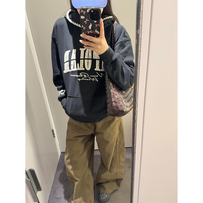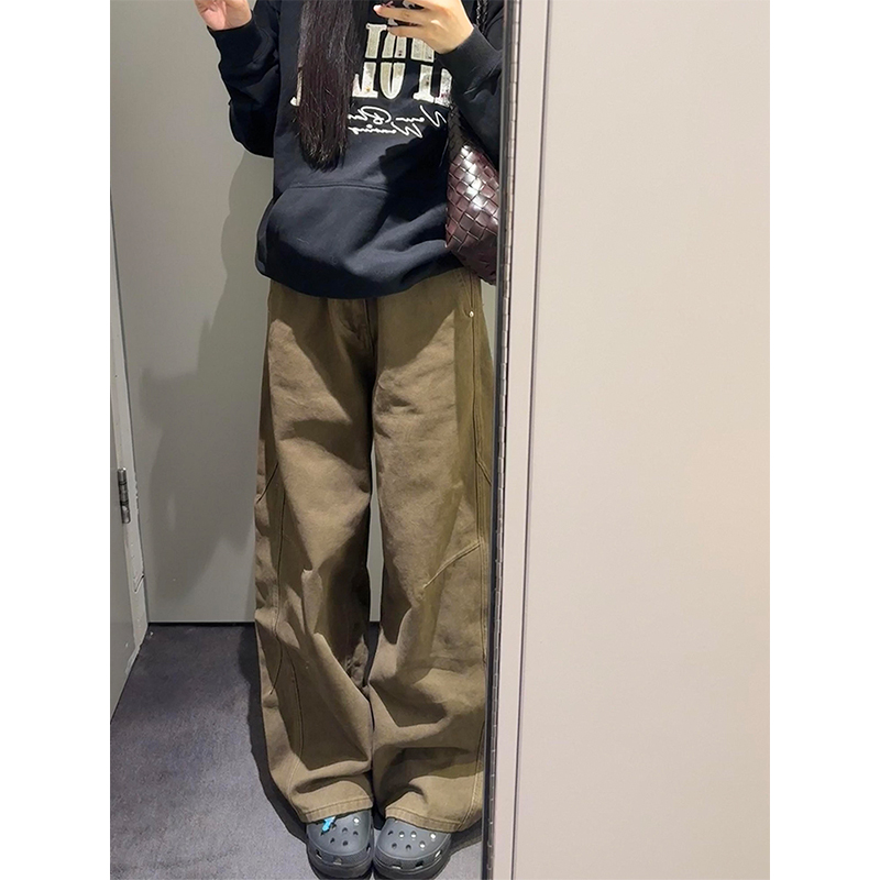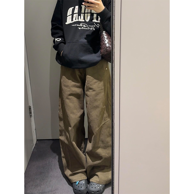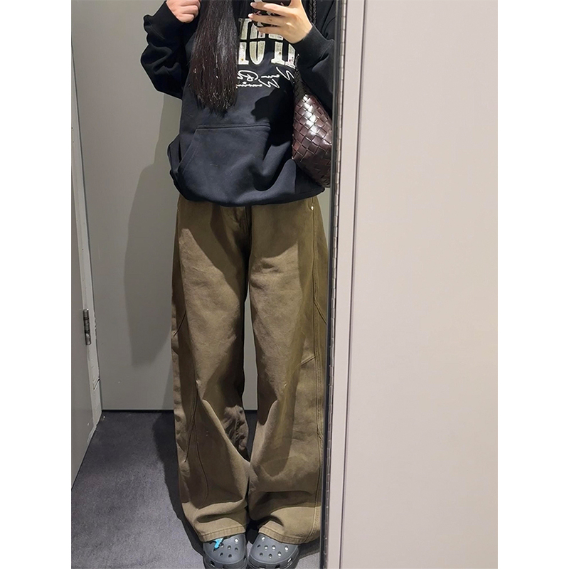 大码复古咖色高级感水洗宽松直筒牛仔裤女秋冬新款高腰显瘦阔腿裤