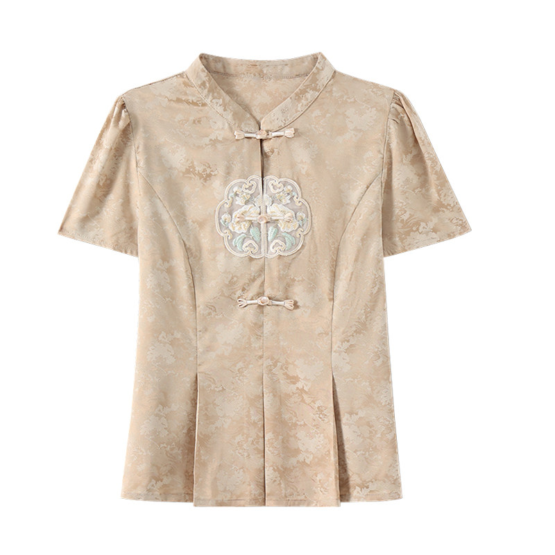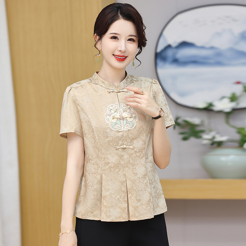 新中式妈妈夏装短袖小衫中老年女装大码国风复古盘扣t恤唐装上衣