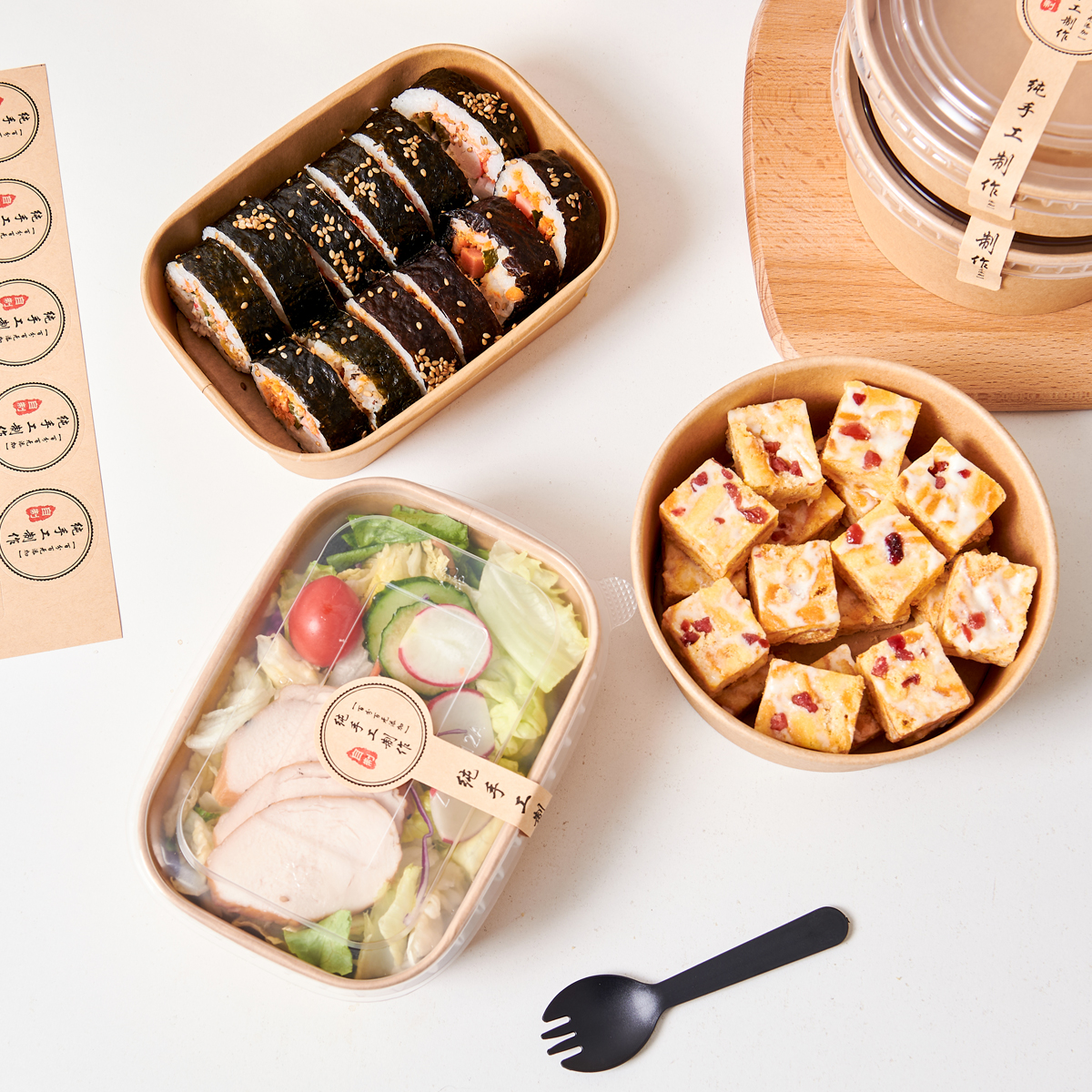 一次性野餐饭盒餐盒牛皮纸长方形外卖快餐打包盒环保便当沙拉盒