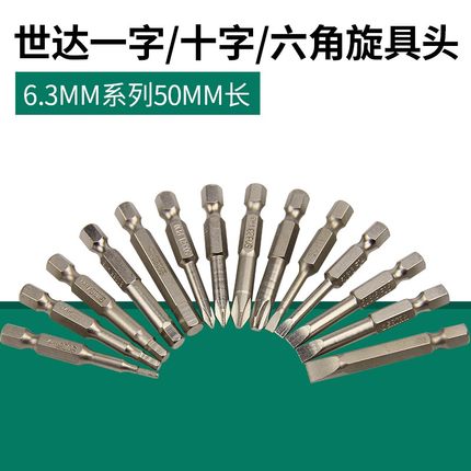 世达6.3方1/4一字十字六角旋具头50毫米长起子头电批59311螺丝批