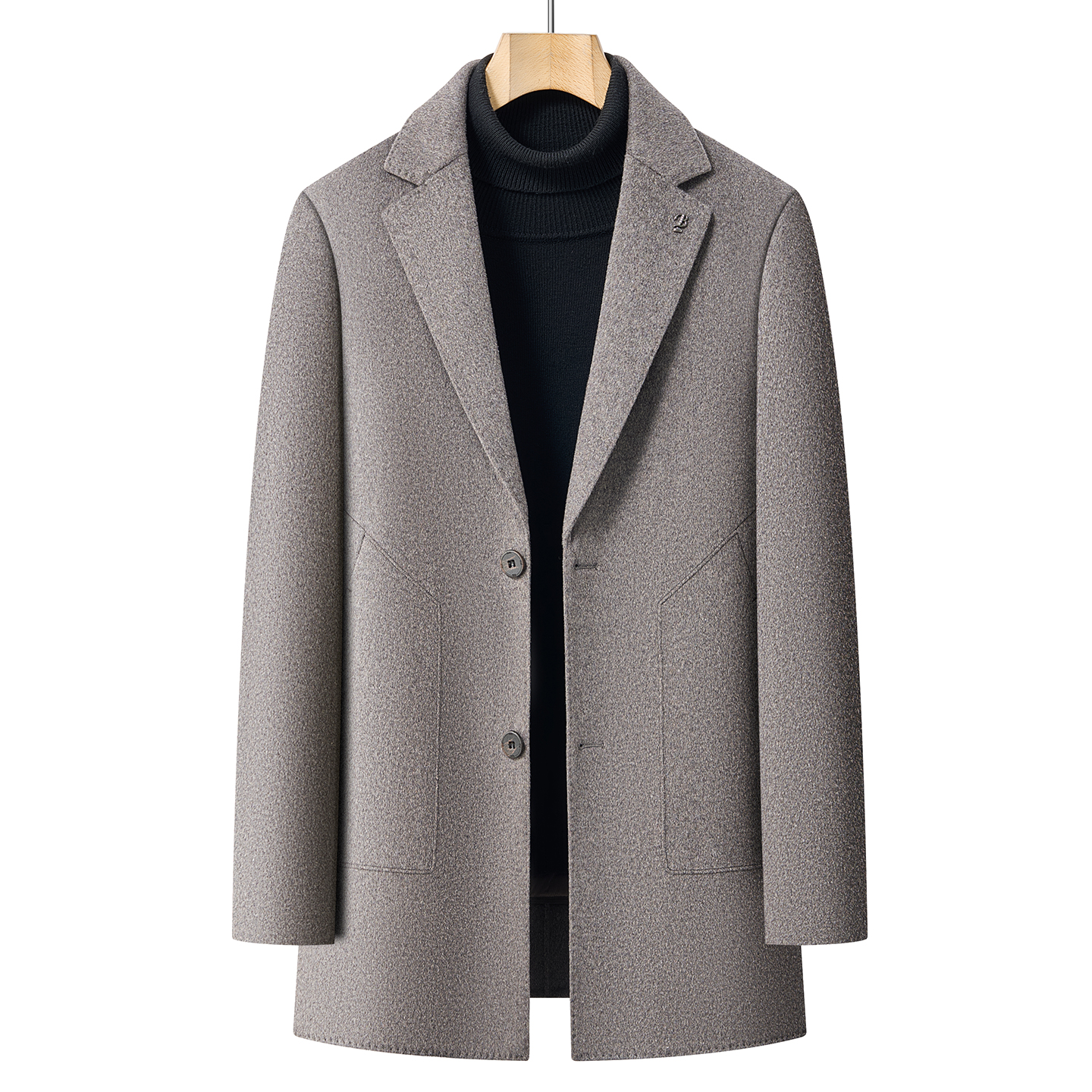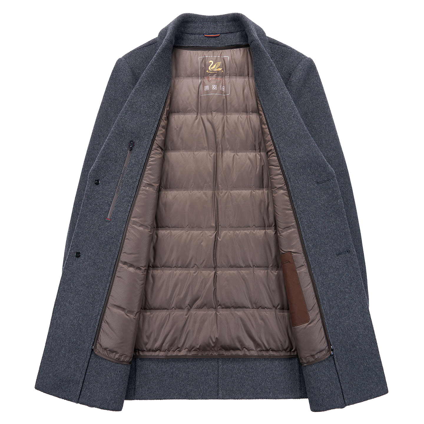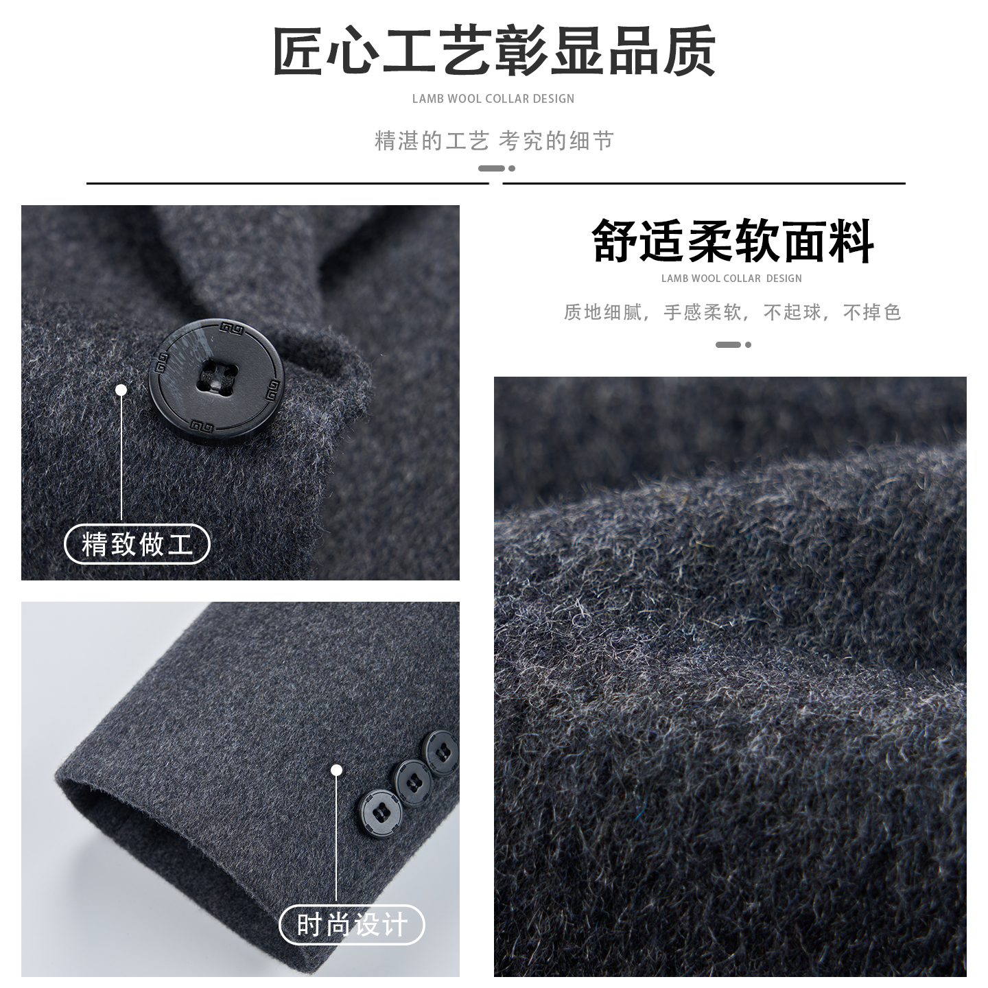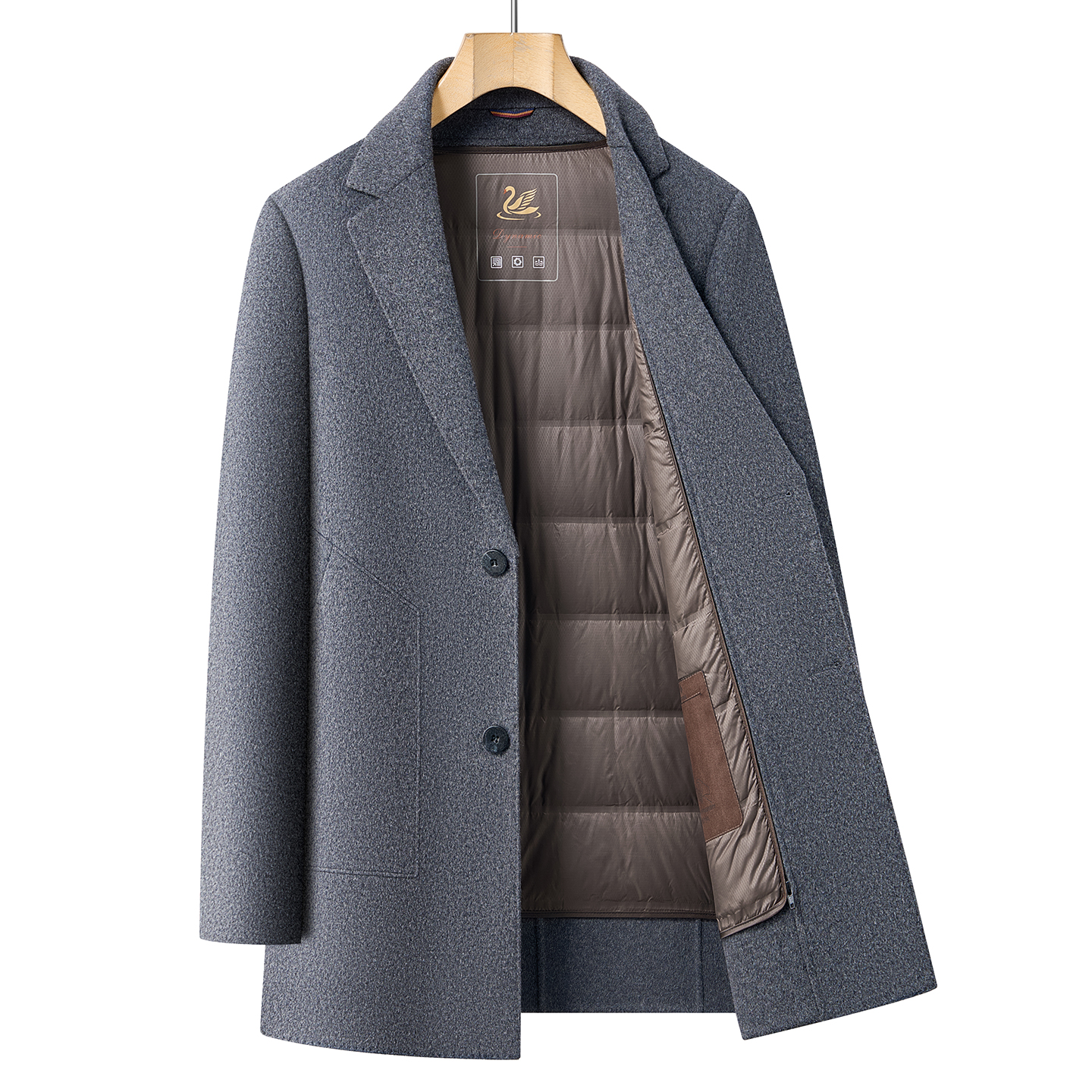 恒源祥中长款毛呢西装男士冬季羽绒内胆加厚西服领羊毛大衣外套男