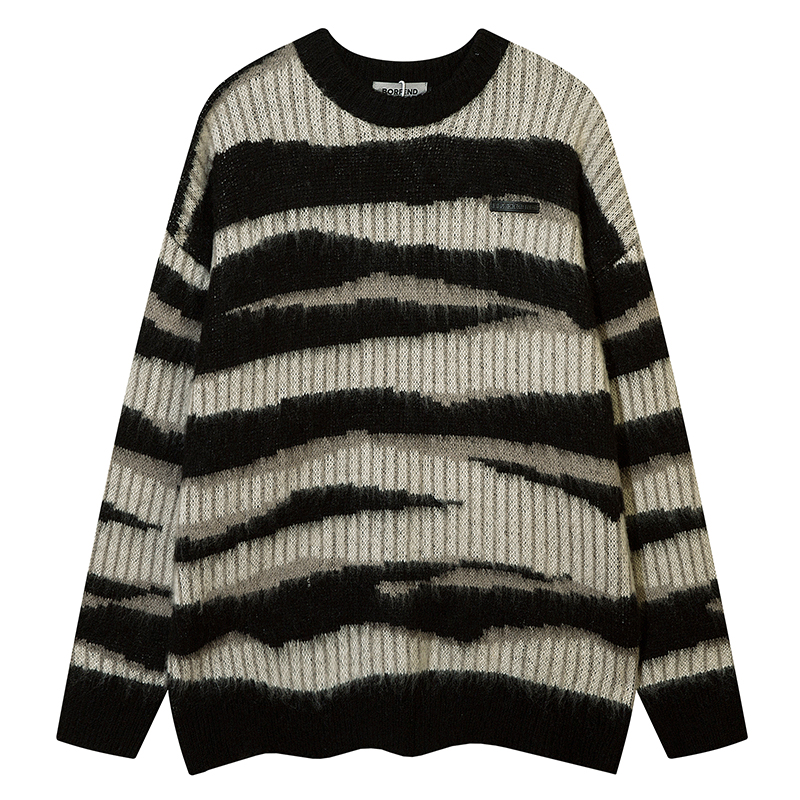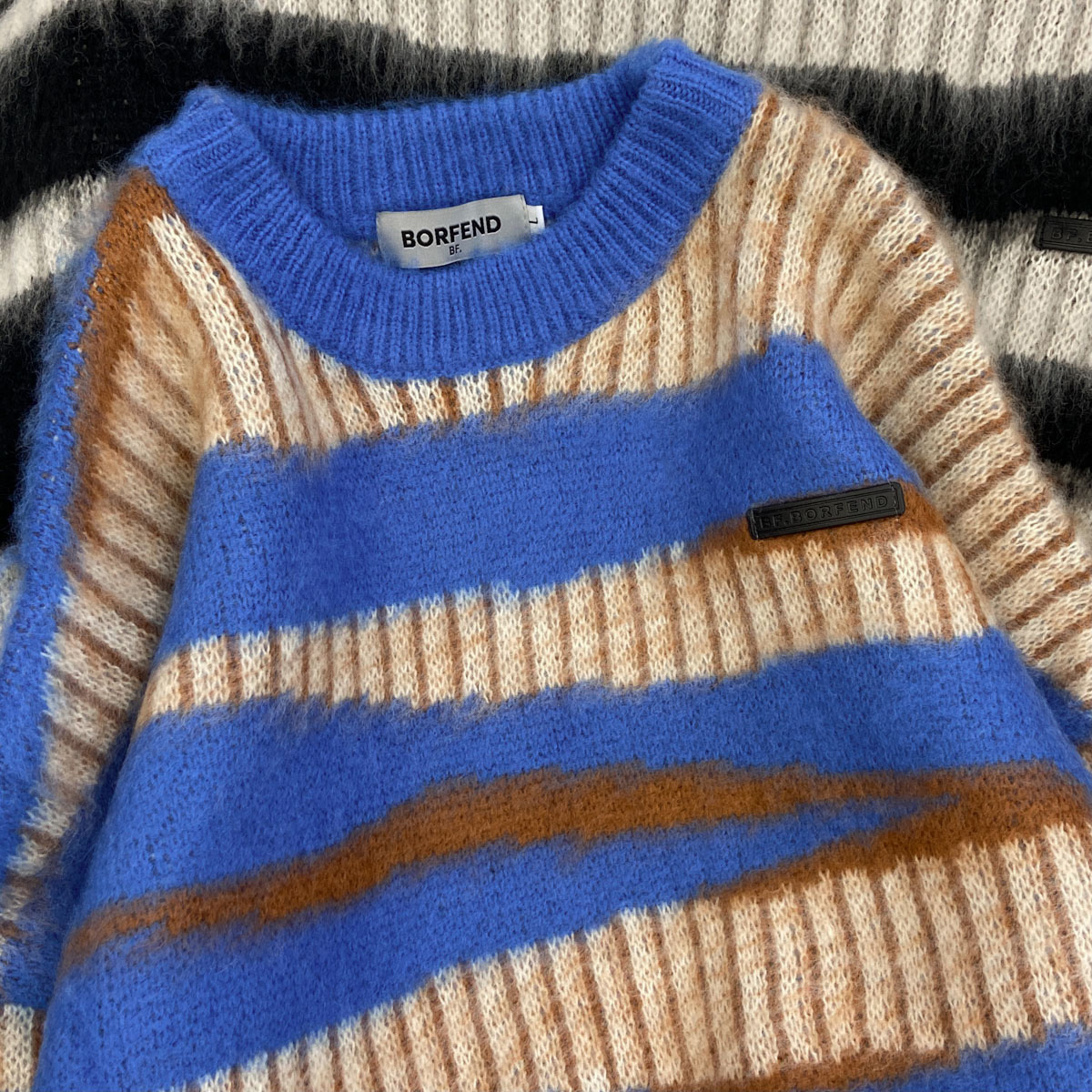 NOONOZ潮牌马海毛条纹针织衫毛衣