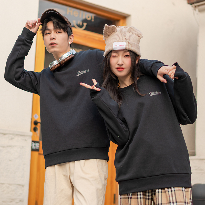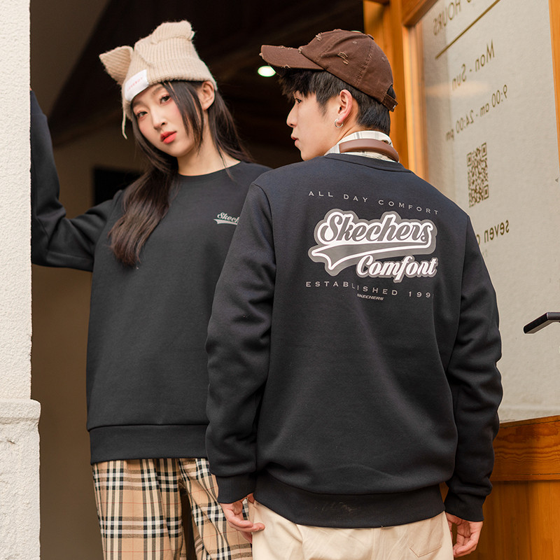 Skechers/斯凯奇男女同款圆领卫衣加绒保暖运动休闲针织套头衫