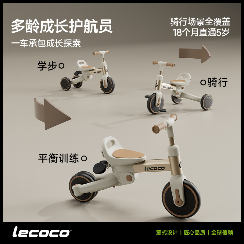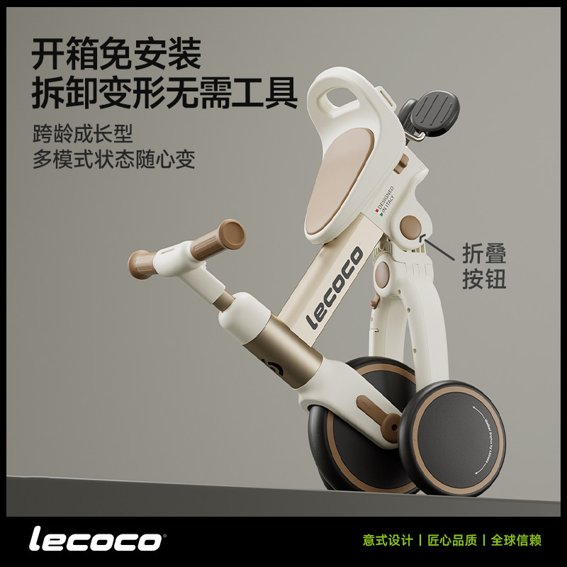 lecoco乐卡儿童平衡车1—3岁宝宝手推三轮车可折叠滑步滑行脚踏车