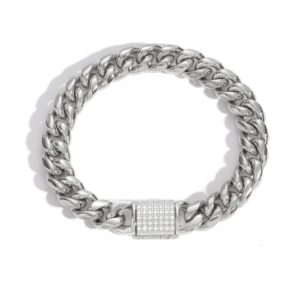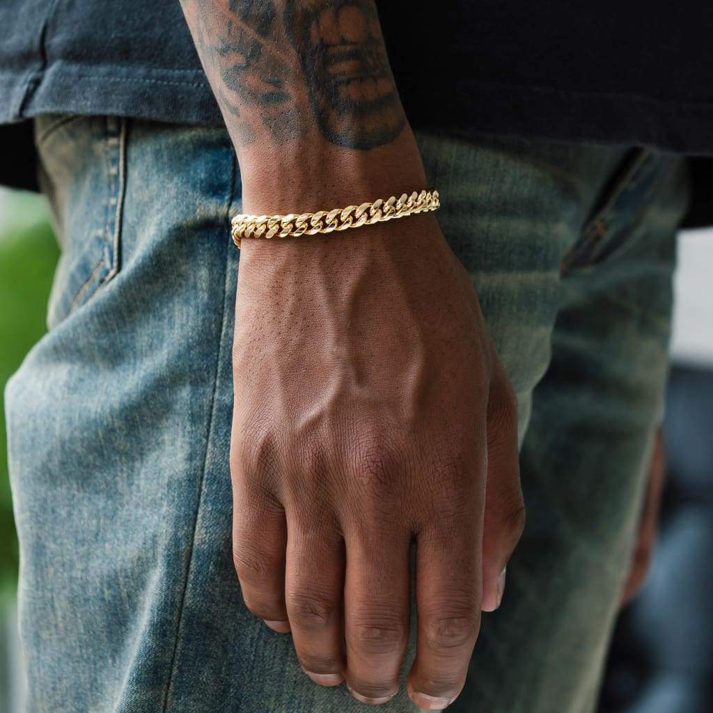 ICE BLING 镀18K金金色钛钢古巴手链欧美美式男士6MM细金手链