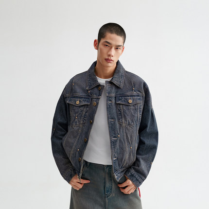 CHINISM丨铆钉捏褶牛仔外套男秋季水洗男士做旧夹克/CXQB12B2041