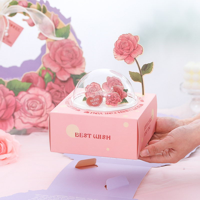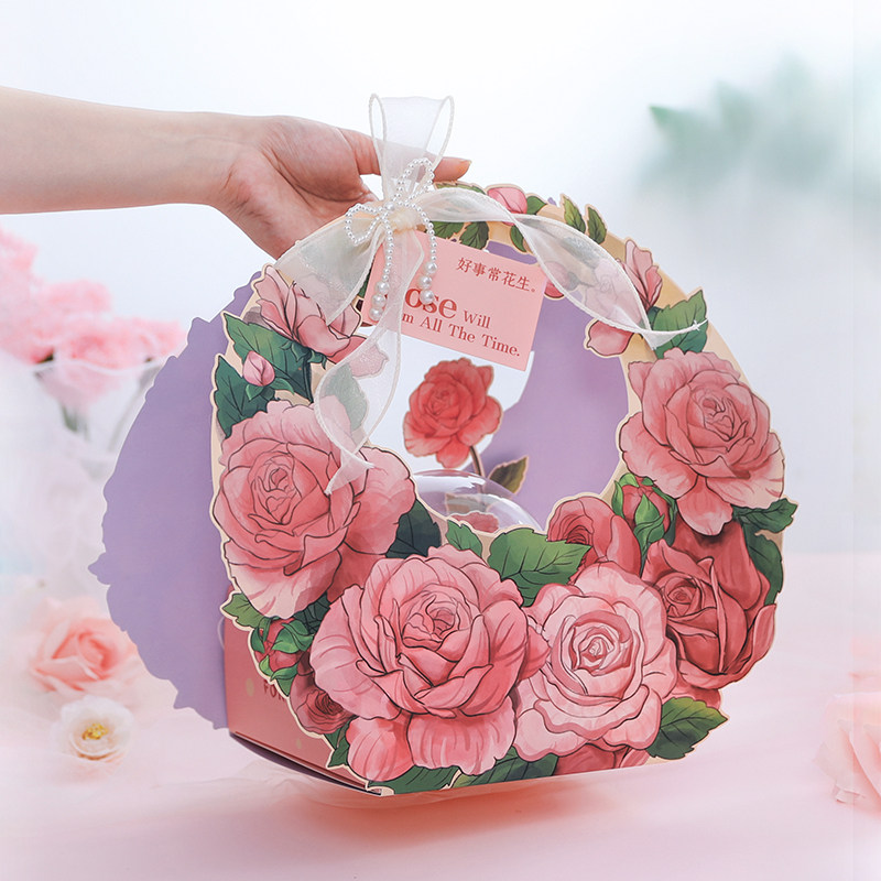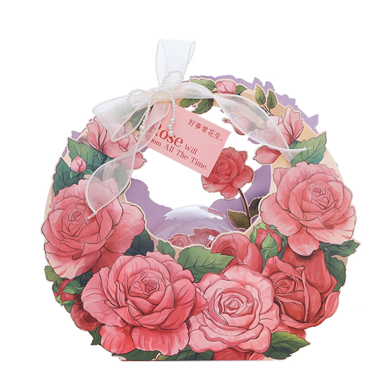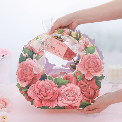 38妇女节母亲节蛋糕盒包装盒玫瑰花环手提送员工水晶球慕斯球礼盒