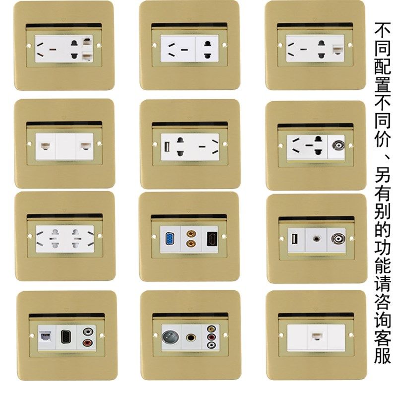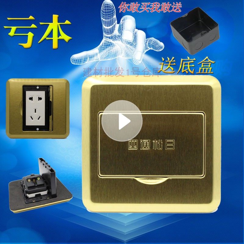 四通松日国际电工五孔二三眼电源隐藏式不锈钢铜拉丝地插座防水