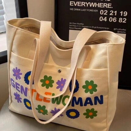帆布包包女2024新款大容量通勤百搭手提袋大学生上课单肩包托特包