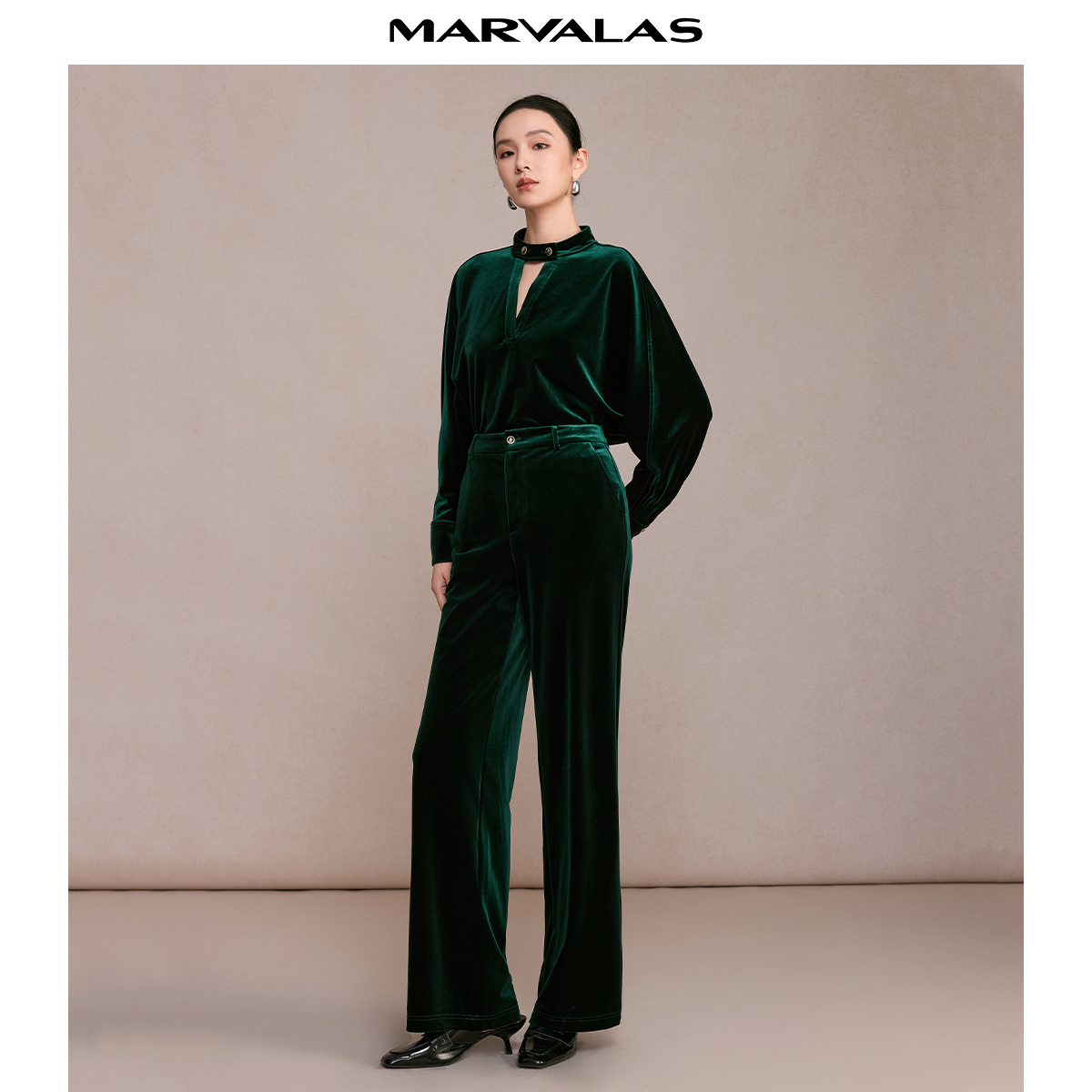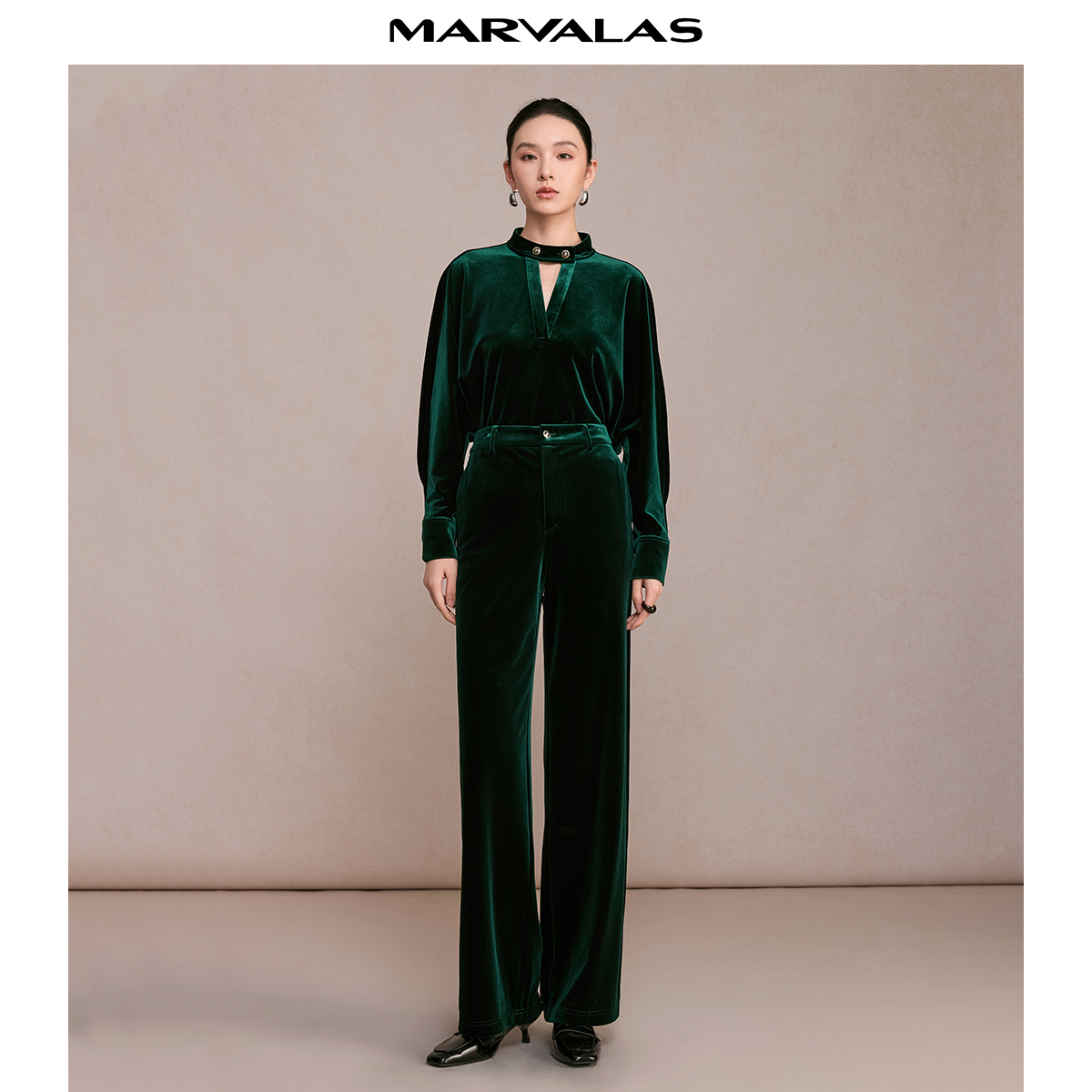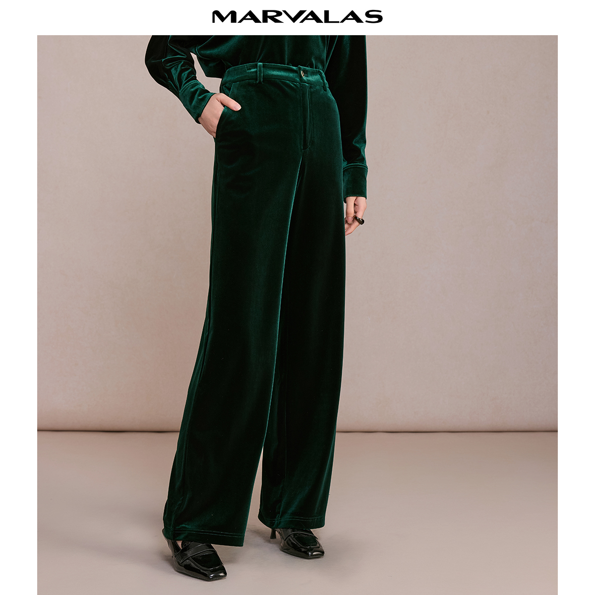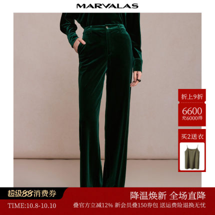 曼德诗弹力丝绒直筒裤2025冬季新款复古纯色休闲长裤显瘦裤子女