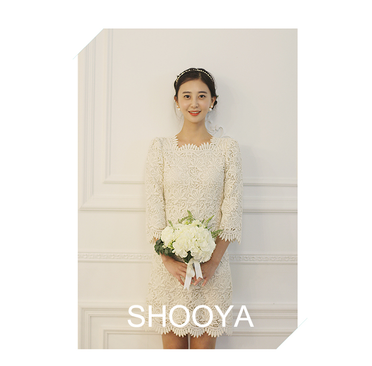 《北极光》韩国复古轻婚纱白色蕾丝连衣裙 旅拍婚礼派对礼服领证
