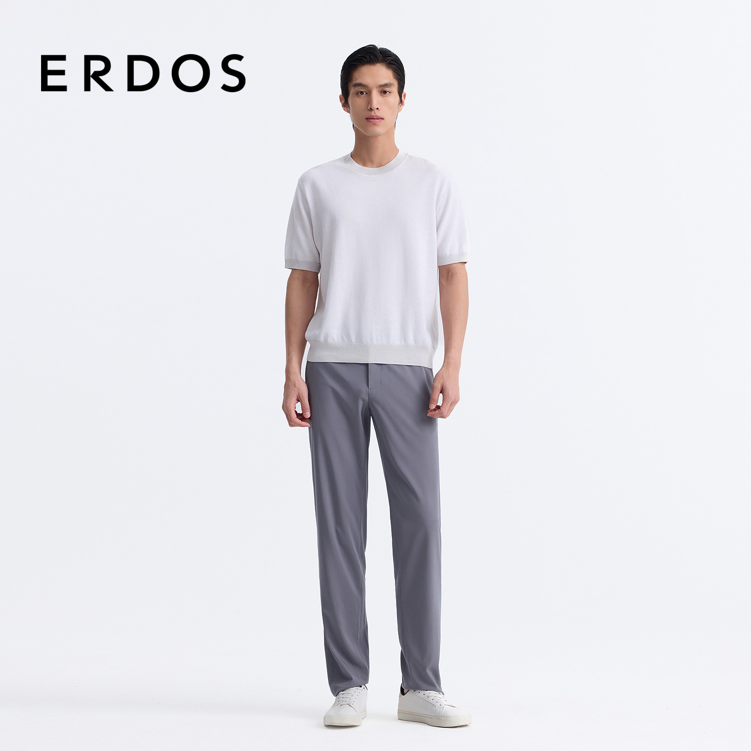 ERDOS 男装棉麻混纺T恤25年夏新款浅灰轻薄弹力短袖上衣商务休闲