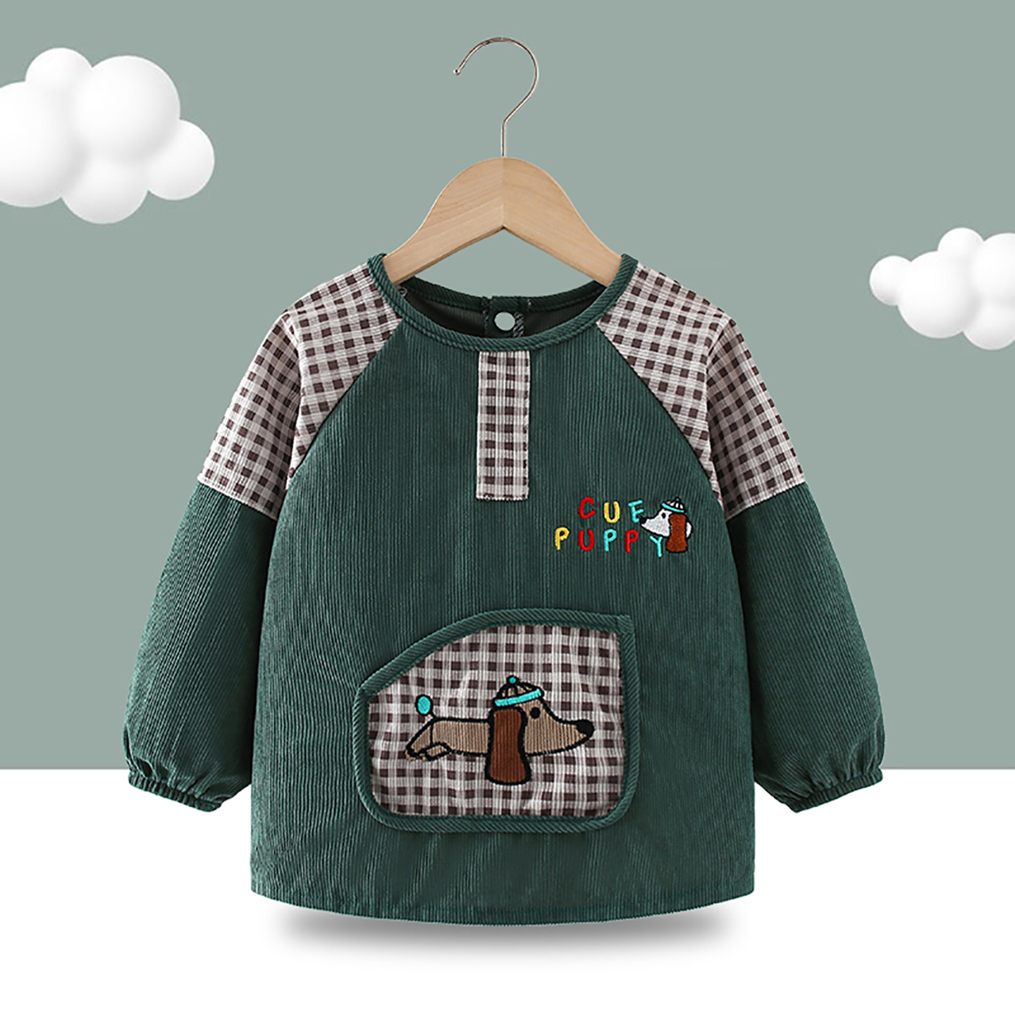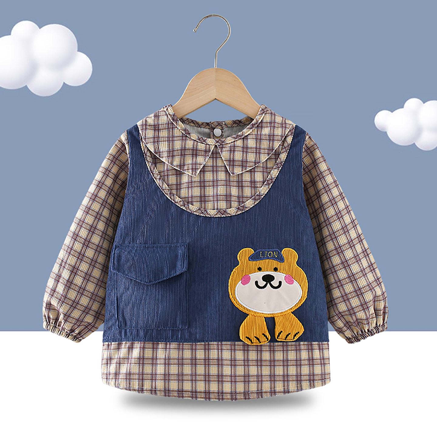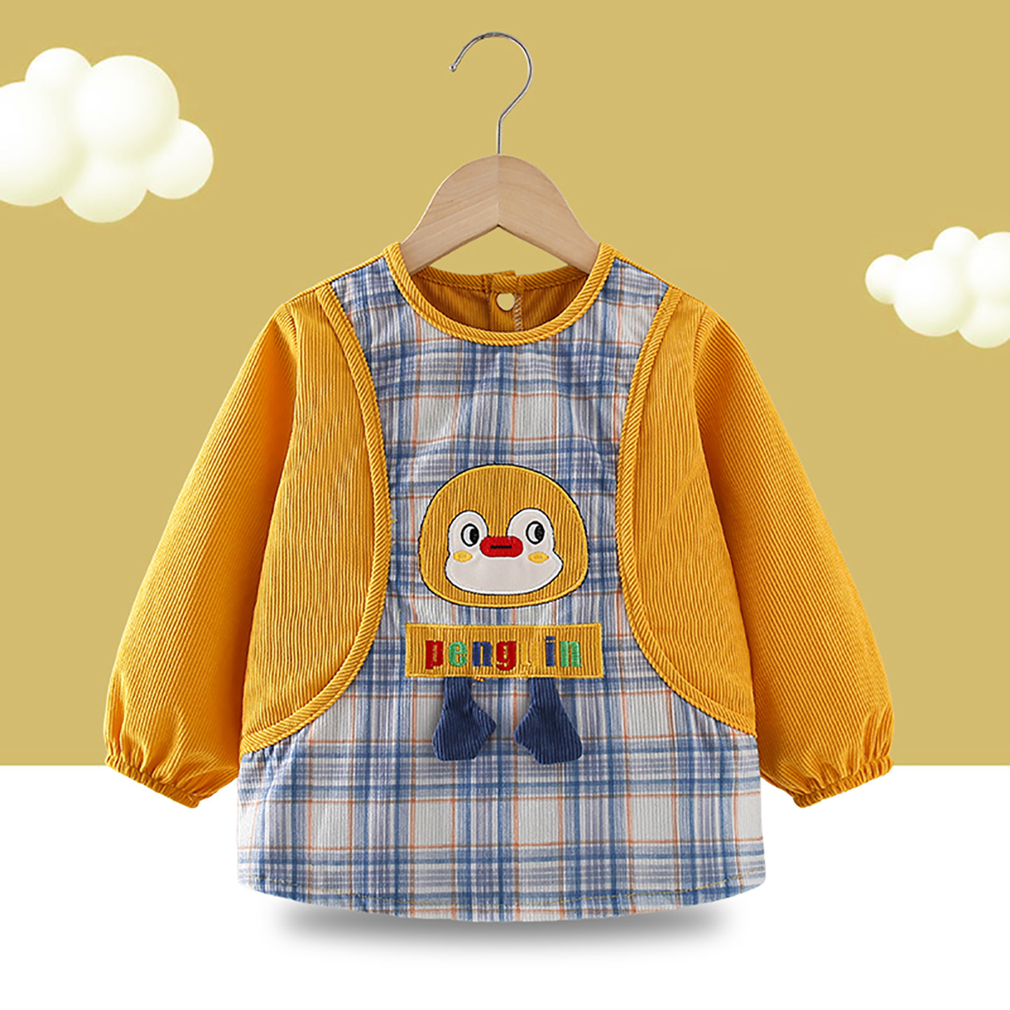 儿童罩衣宝宝吃饭围兜秋冬外穿防水防脏反穿衣男孩围裙婴儿辅食衣