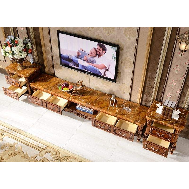 欧式复古大理石电视柜茶几组合实木大小户型客厅厅柜橡木地柜整装