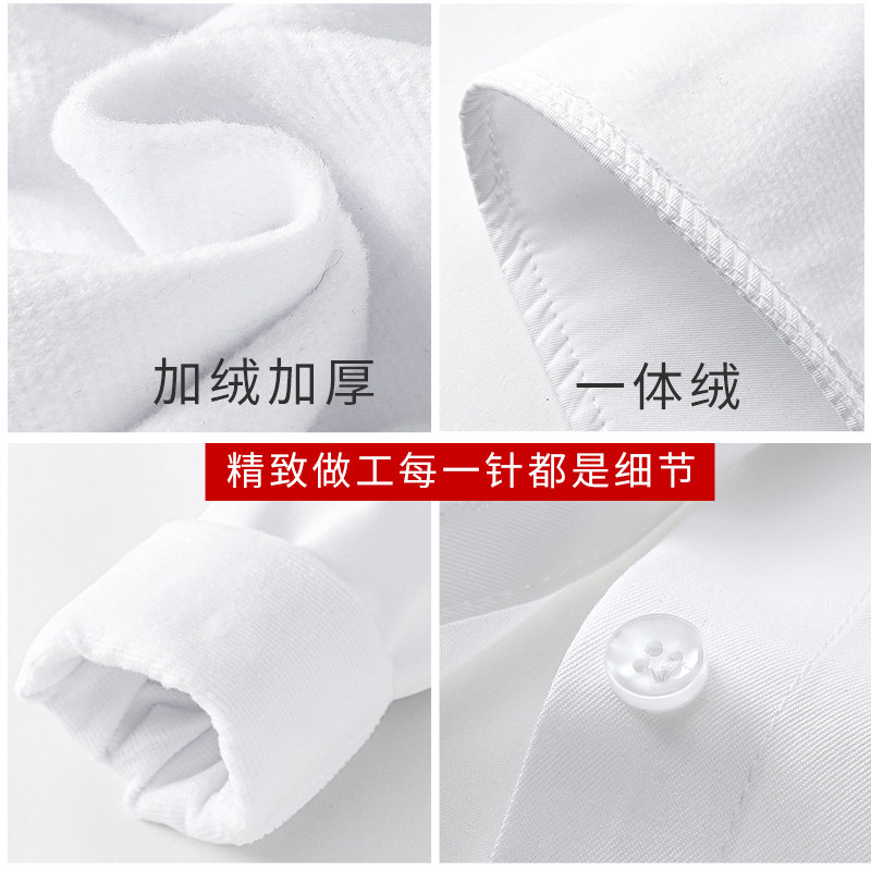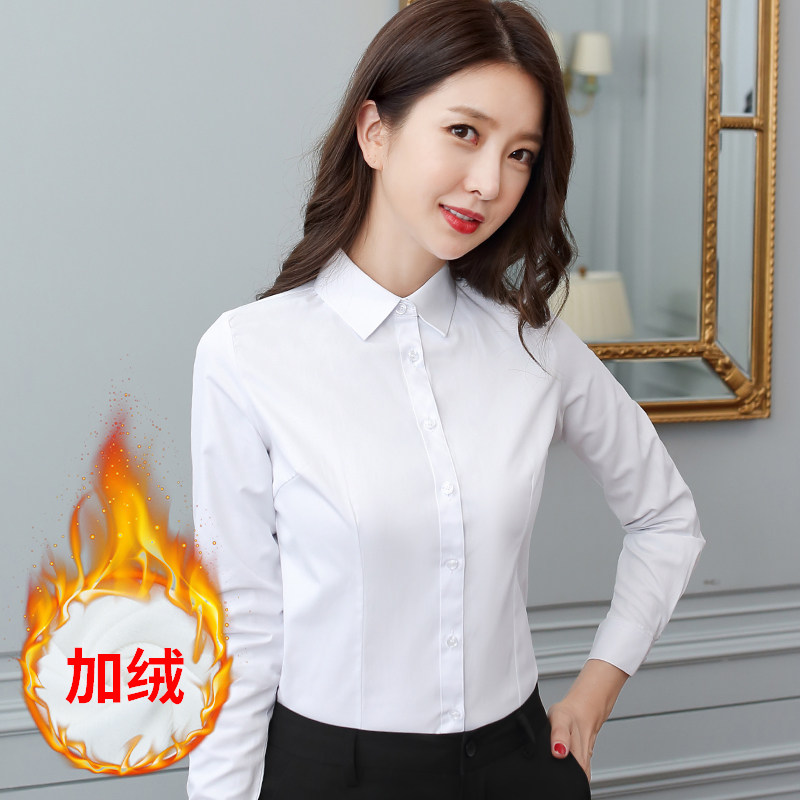 加绒白衬衫女长袖秋冬白色衬衣加厚保暖一体绒蓝色职业装正装工装