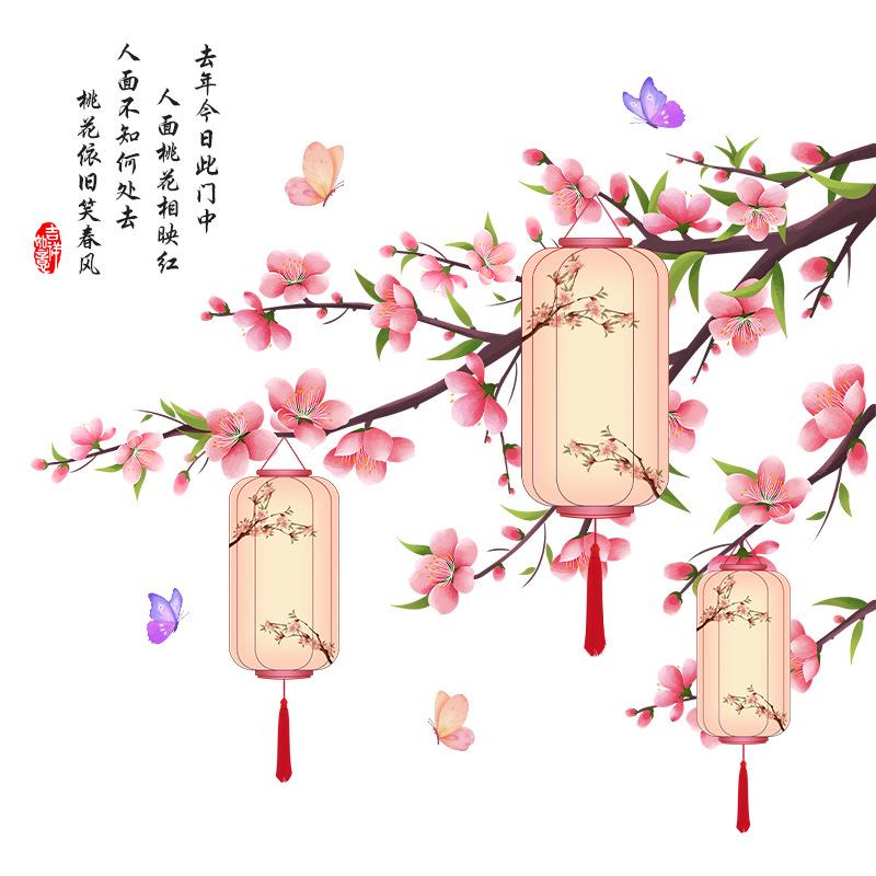 古风灯笼墙贴画年画养老院客厅电视背景墙装饰贴纸自粘中国风中式