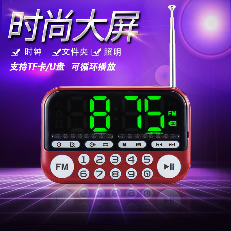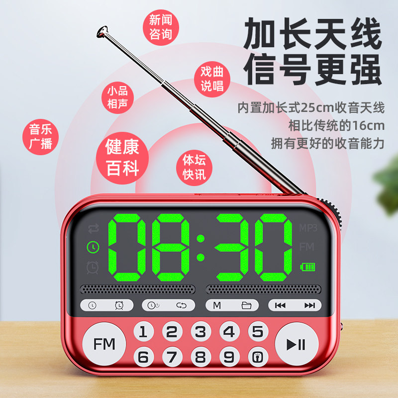 金正老年人收音机闹钟音响便携式音乐迷你充电唱戏定时关机播放器