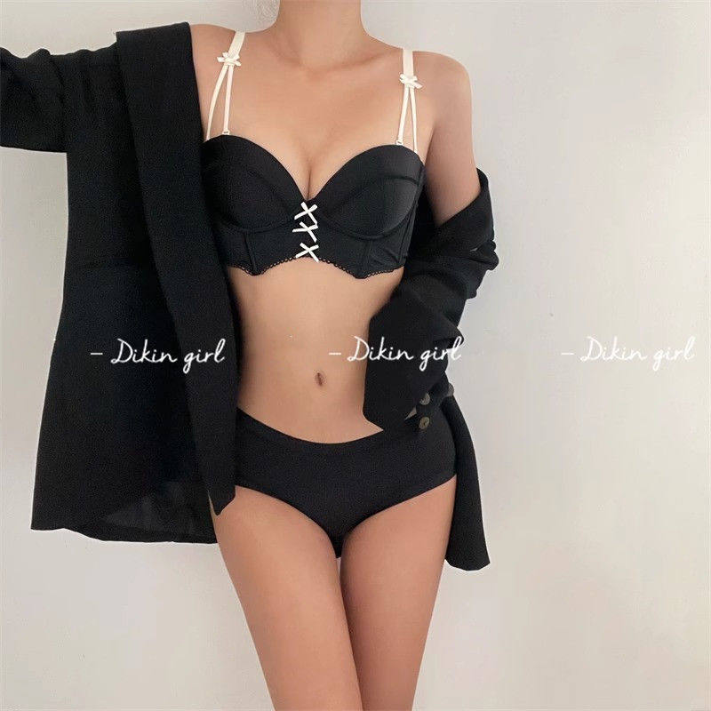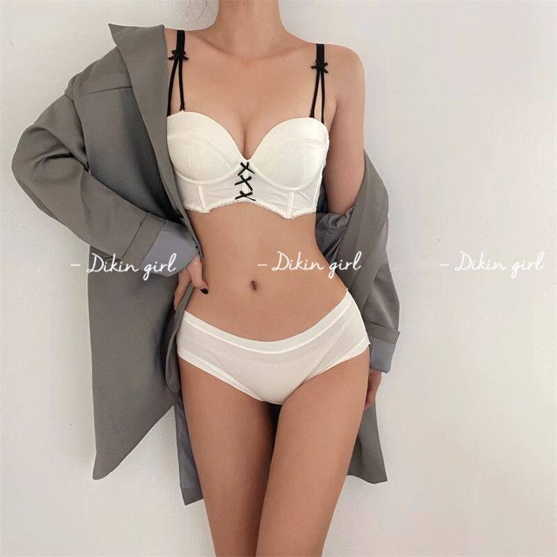 新款纯欲风半杯小胸聚拢内衣女套装无钢圈收副乳防下垂加厚文胸罩
