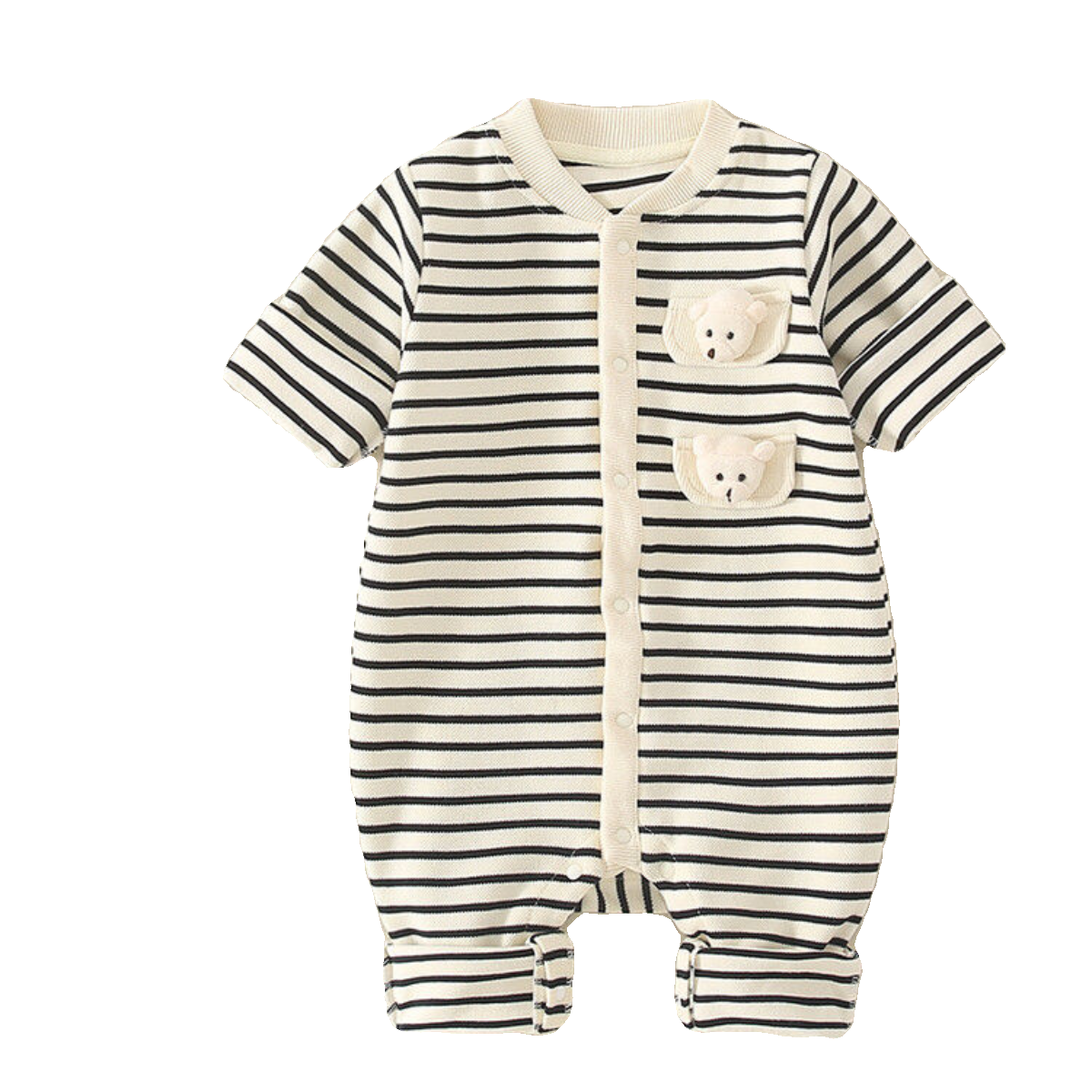 婴儿连体衣春秋男女宝宝哈衣爬服新生儿衣服长袖睡衣条纹外穿潮服