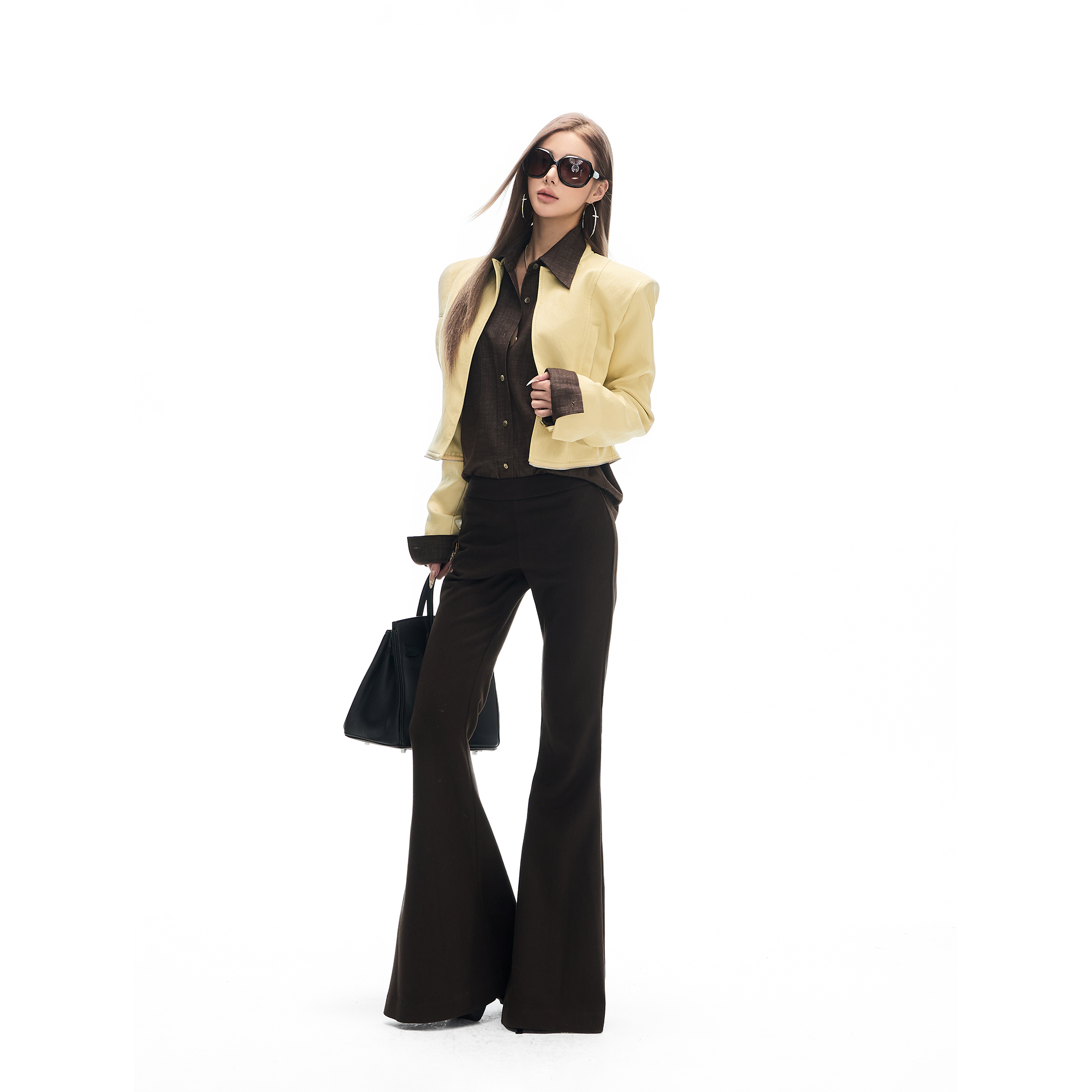 Fanptntox收腰修身皮垫肩皮夹克上衣立领分割多穿PU皮衣半裙外套