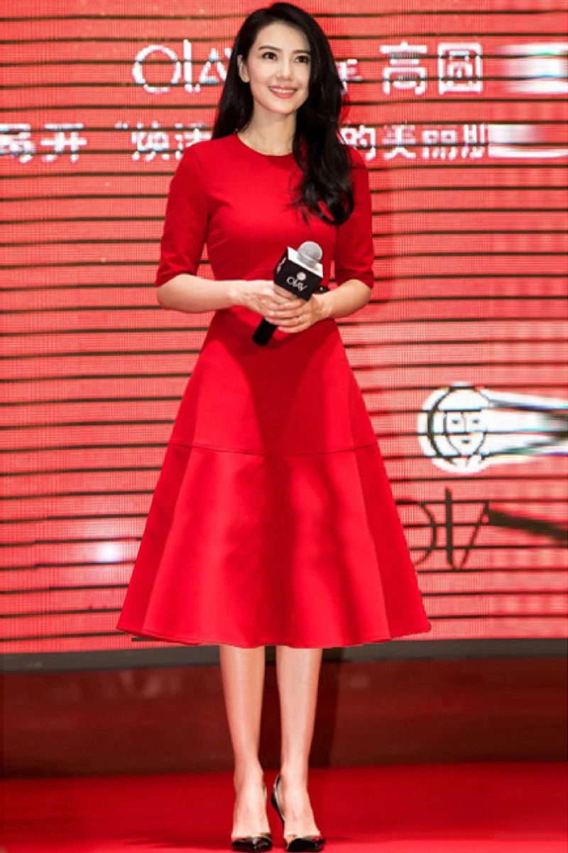 高圆圆同款连衣裙女秋季 时尚淑女通勤职业显瘦遮肚 红色回门裙秋