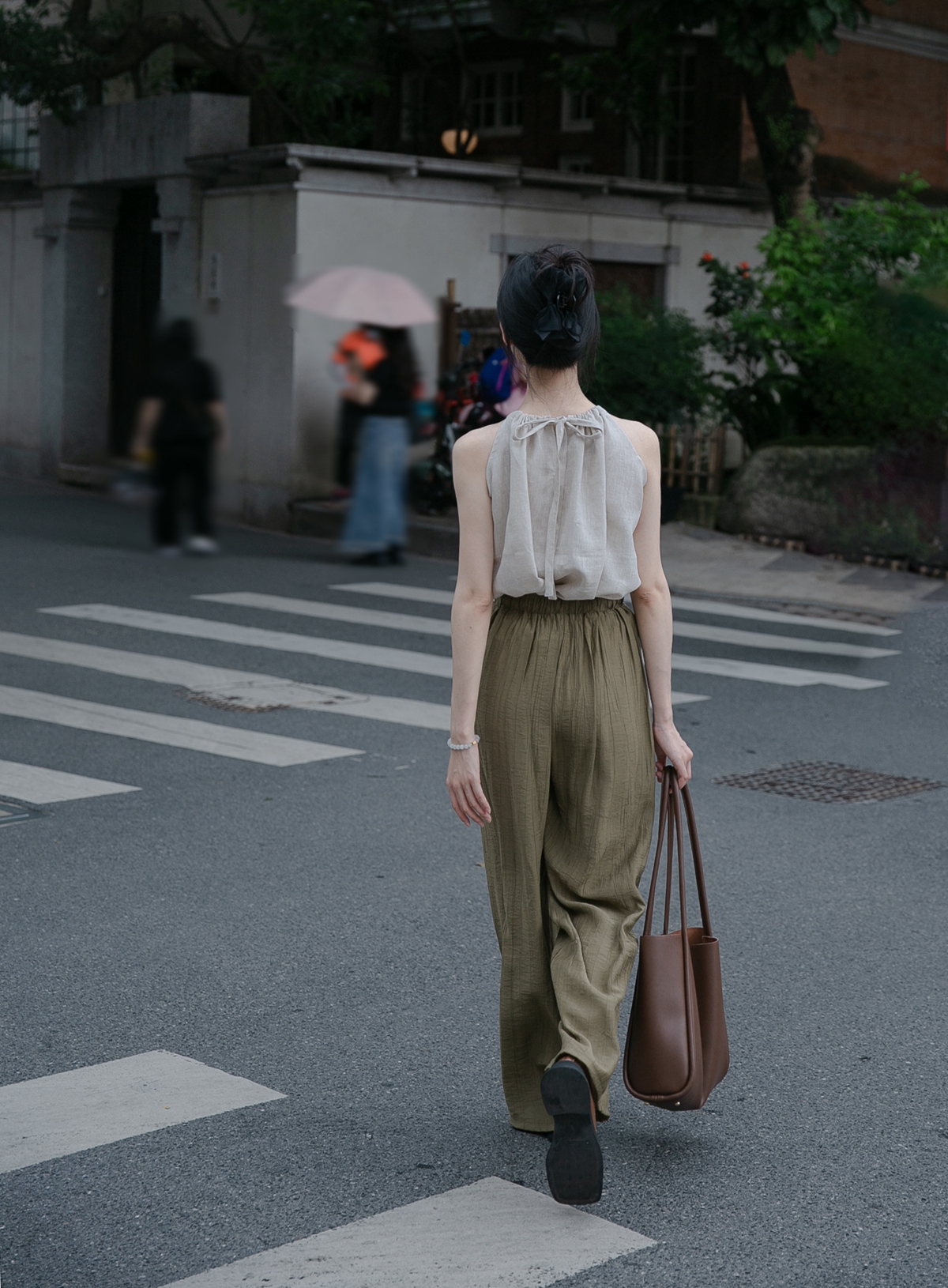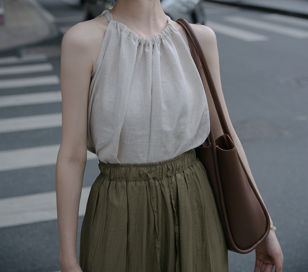 2025文艺气质宽松亚麻削肩挂脖吊带背心无袖上衣宽松棉麻打底衫