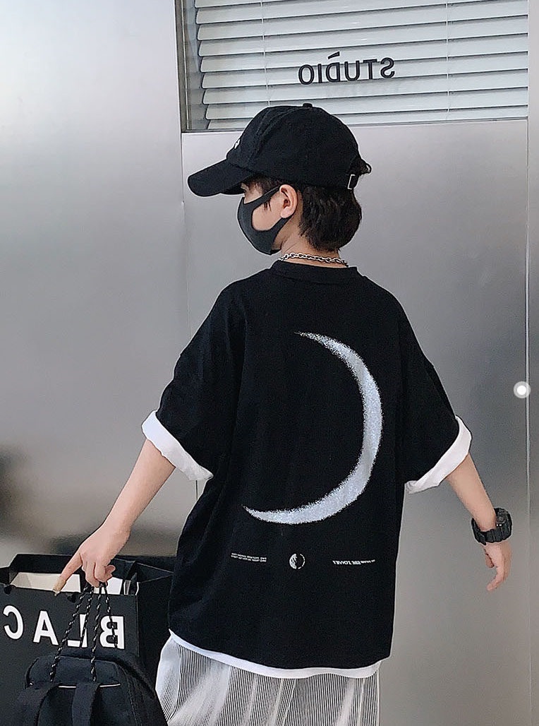 男童t恤短袖2025夏装新款自制儿童纯棉上衣潮牌洋气中大童半袖潮T
