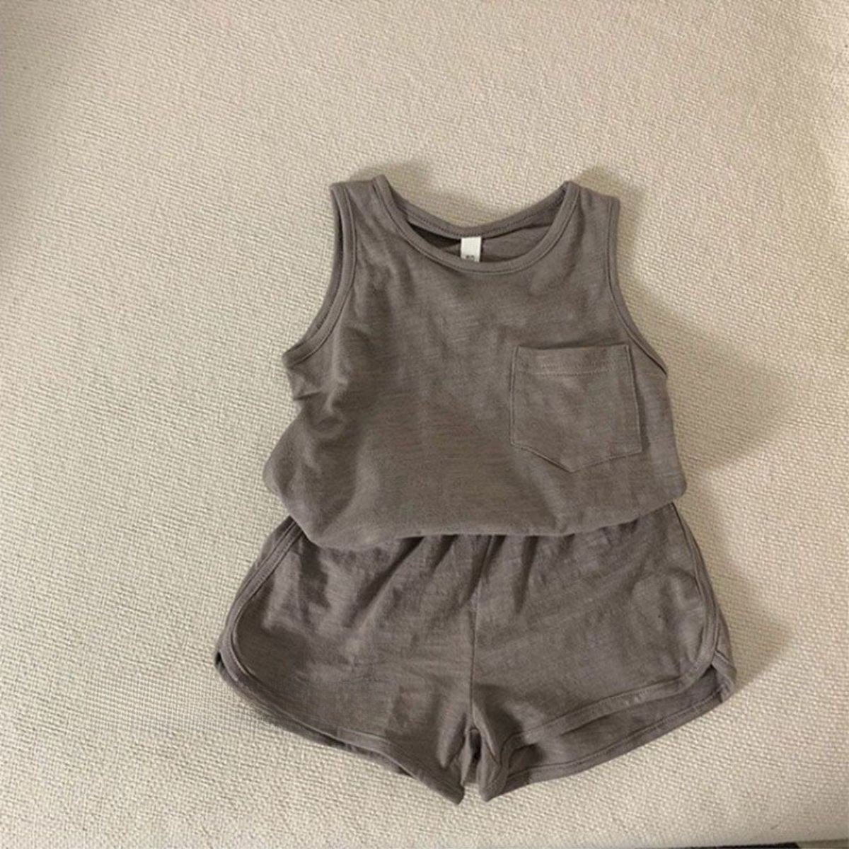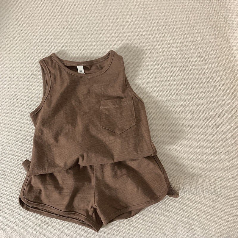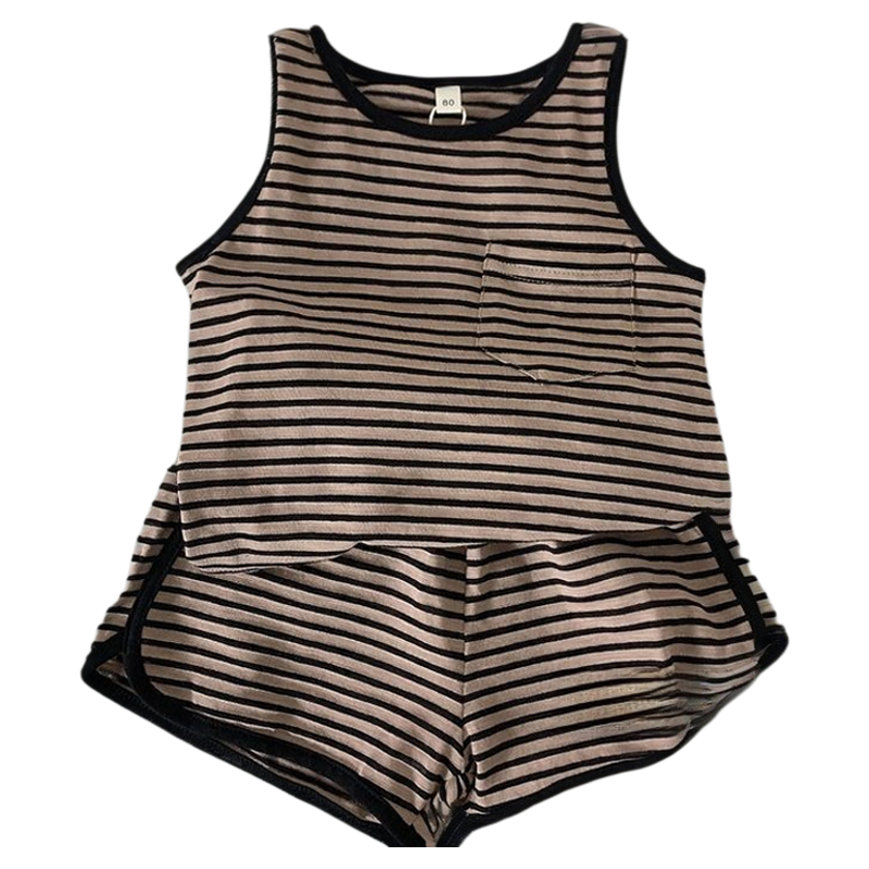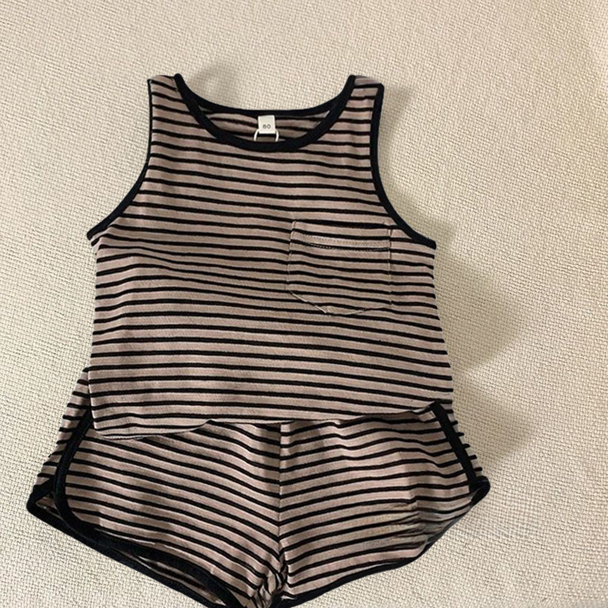 儿童夏季背心无袖套装男女童纯棉短袖T恤透气条纹上衣短裤两件套