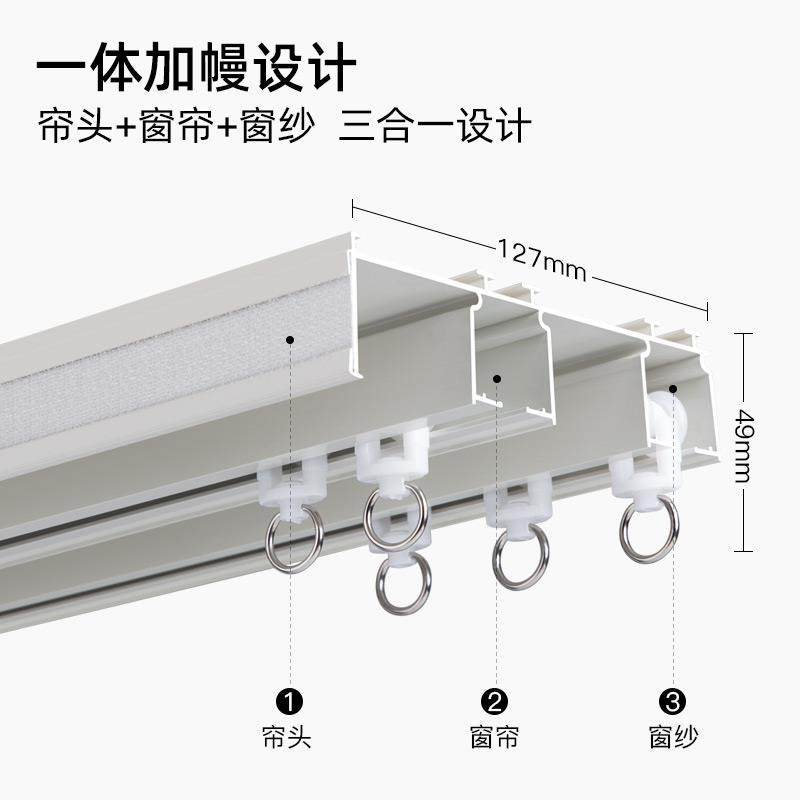 V3FP窗帘轨道杆单双加幔轨顶墙装客厅飘窗直轨静音帘头窗帘盒
