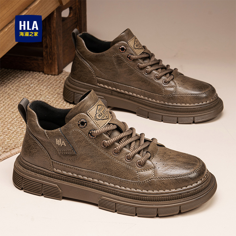 海澜之家黑色马丁靴男2025新款秋冬季低帮休闲皮鞋男士厚底工装靴
