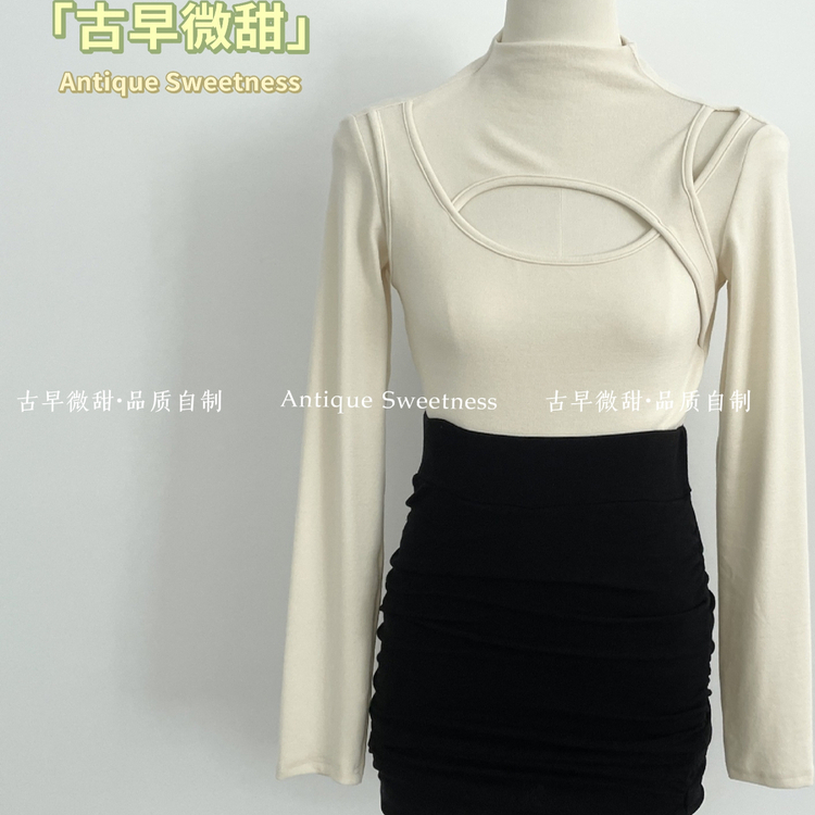 古早微甜 自制纯欲性感辣妹褶皱半身裙女春秋修身显瘦包臀短裙