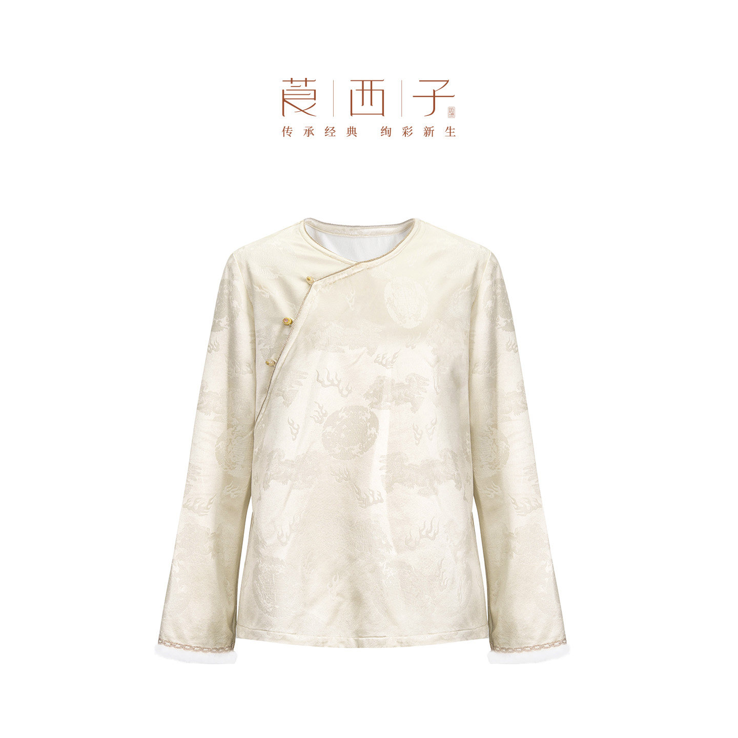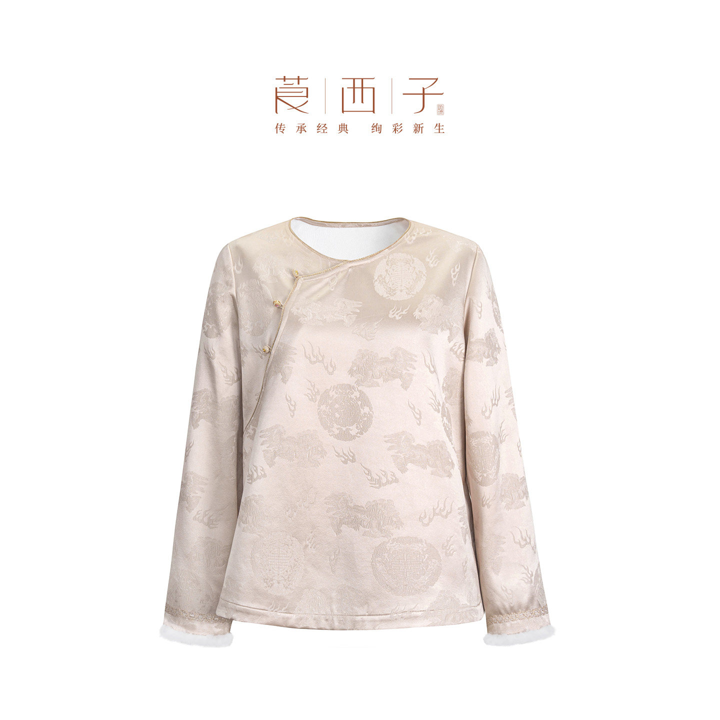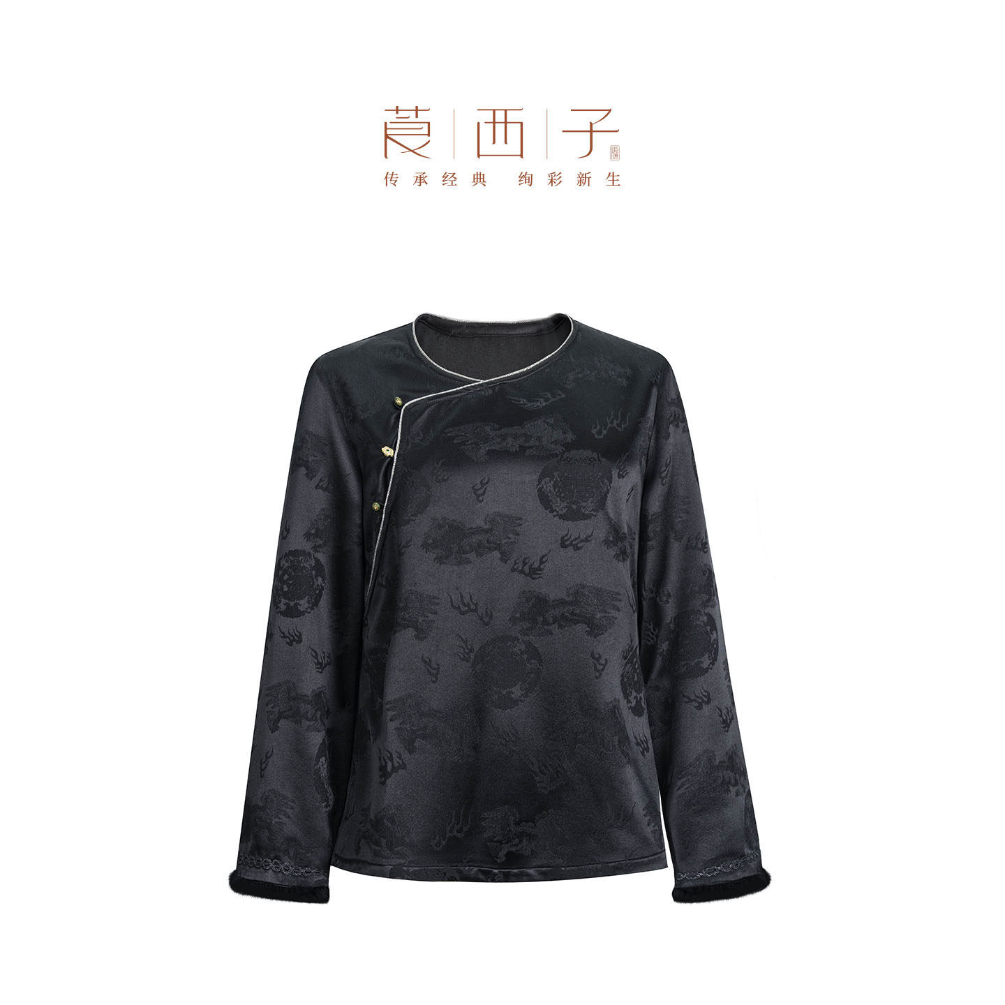 【虞兮】莨西子新中式国风桑蚕真丝长袖衬衫女秋冬袖口水貂毛拼接