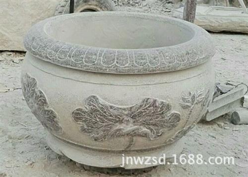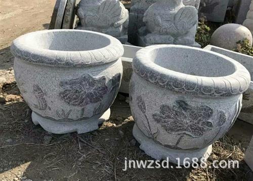 庭院石刻荷花水缸图片家庭石雕流水荷花鱼缸摆件加工厂家