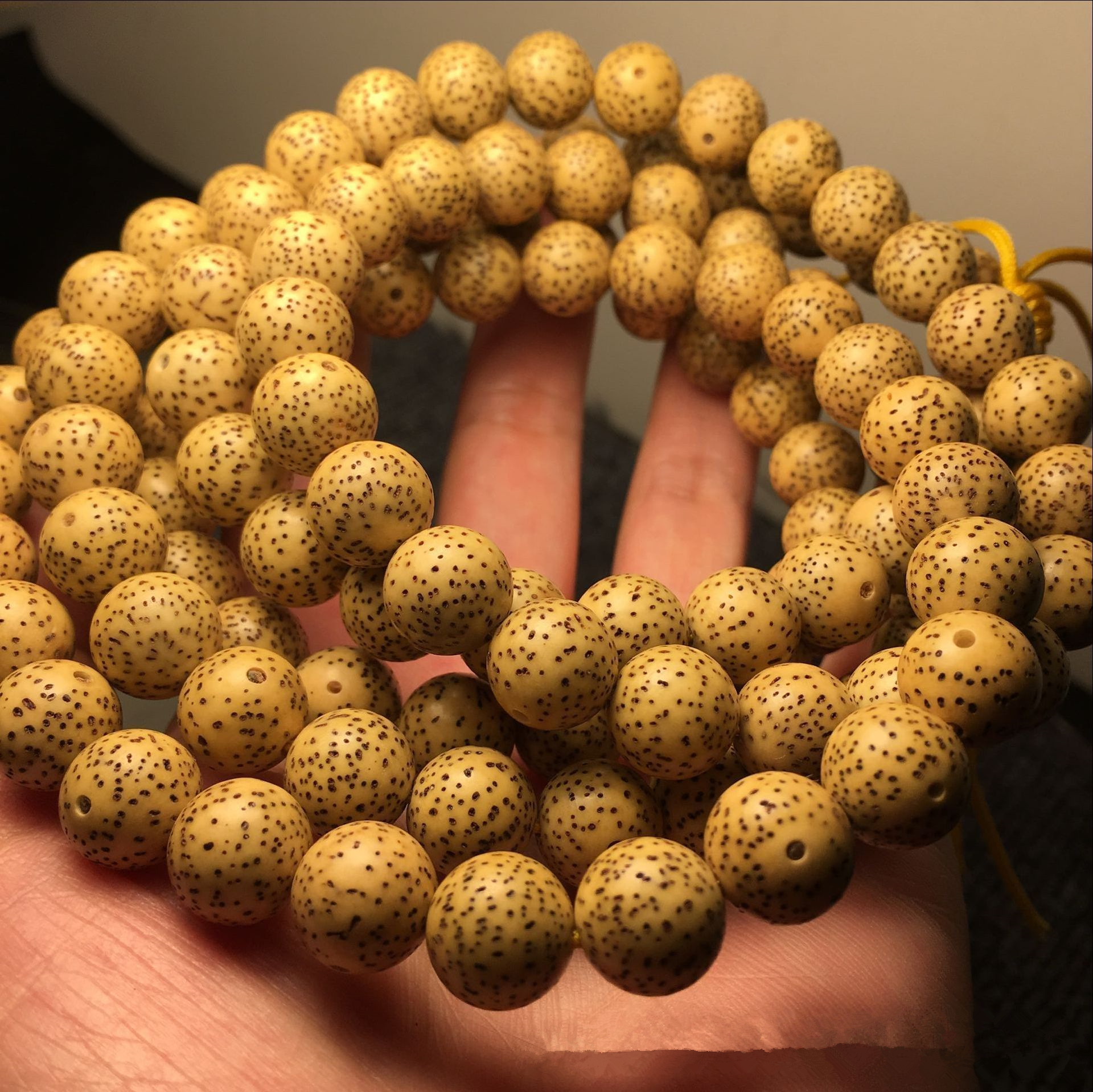 海南籽金黄陈籽老料星月108+6正圆正月菩提散珠文玩手串佛珠男女
