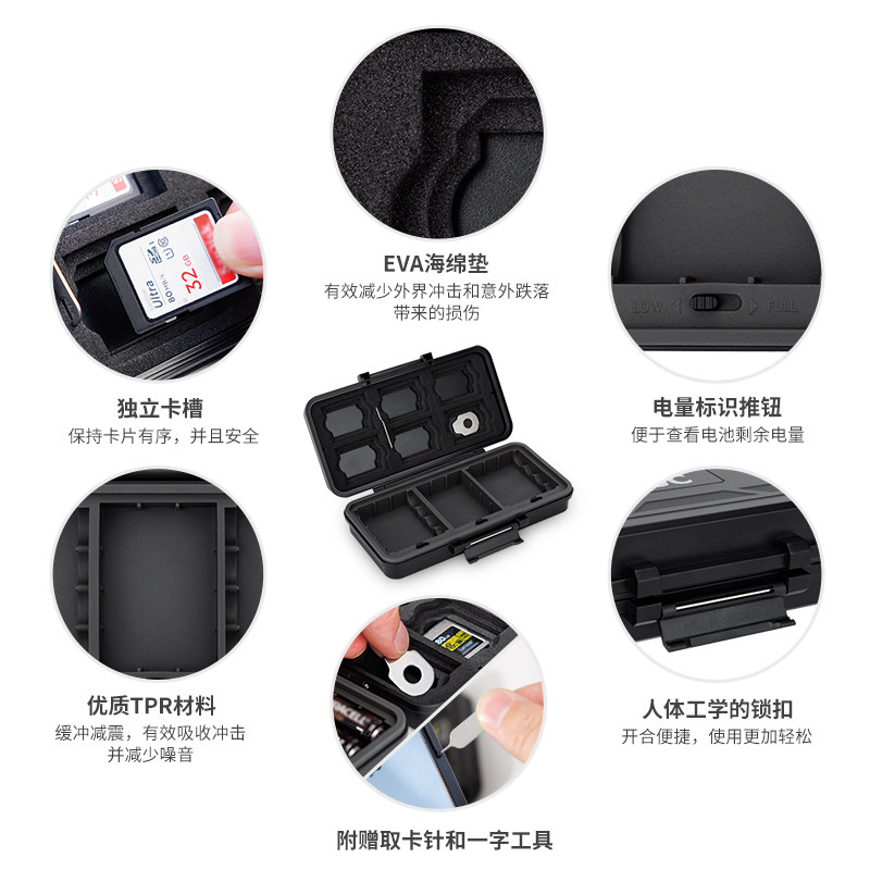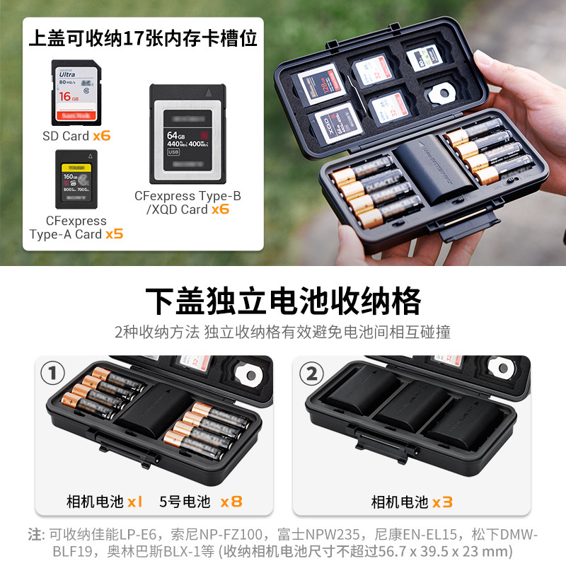 JJC 相机电池盒 适用索尼np-fz100佳能lpe6富士w235尼康el15c锂电池存储收纳SD卡盒CFeA/B卡XQD内存卡保护