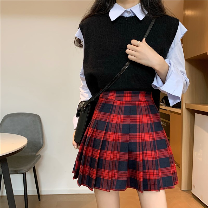 格子百褶裙女松紧腰学院风短裙秋冬2022新款大码胖mm显瘦半身裙子